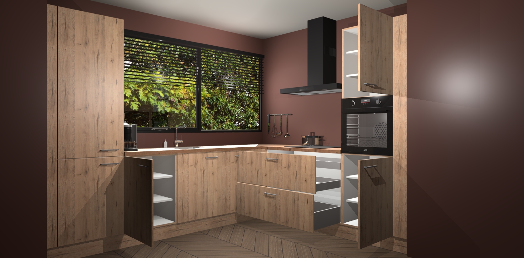 Wij presenteren de revolutie in keukens: de madera natuur keuken Vogar. Met modern design, een tijdloos uiterlijk en kasten die al voor gemonteerd worden geleverd, laat deze stijlvolle keuken uw kookervaring op een hele nieuwe manier transformeren.