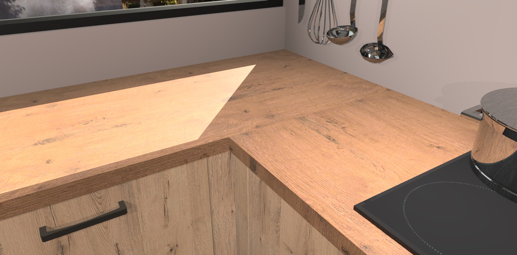 - Bij een hoekwerkblad zijn de hoeken in gevreesd en op maat gemaakt