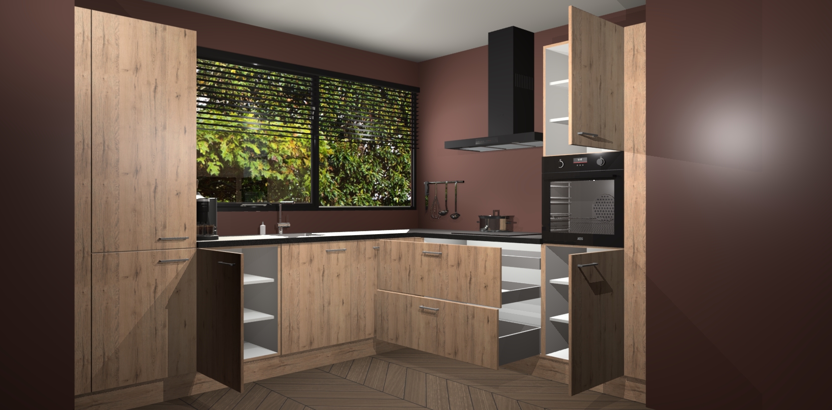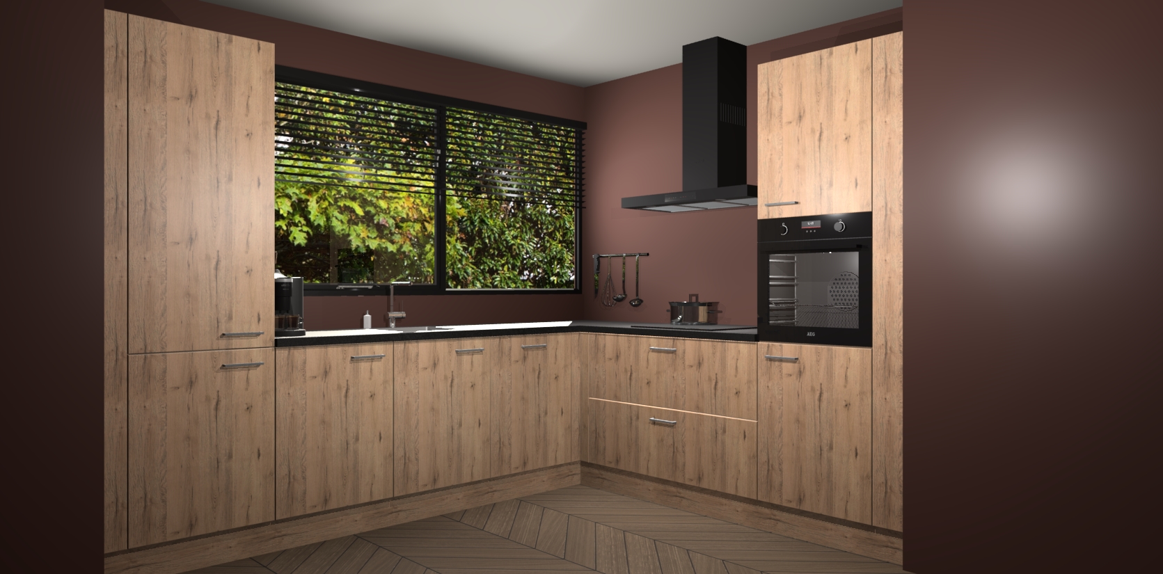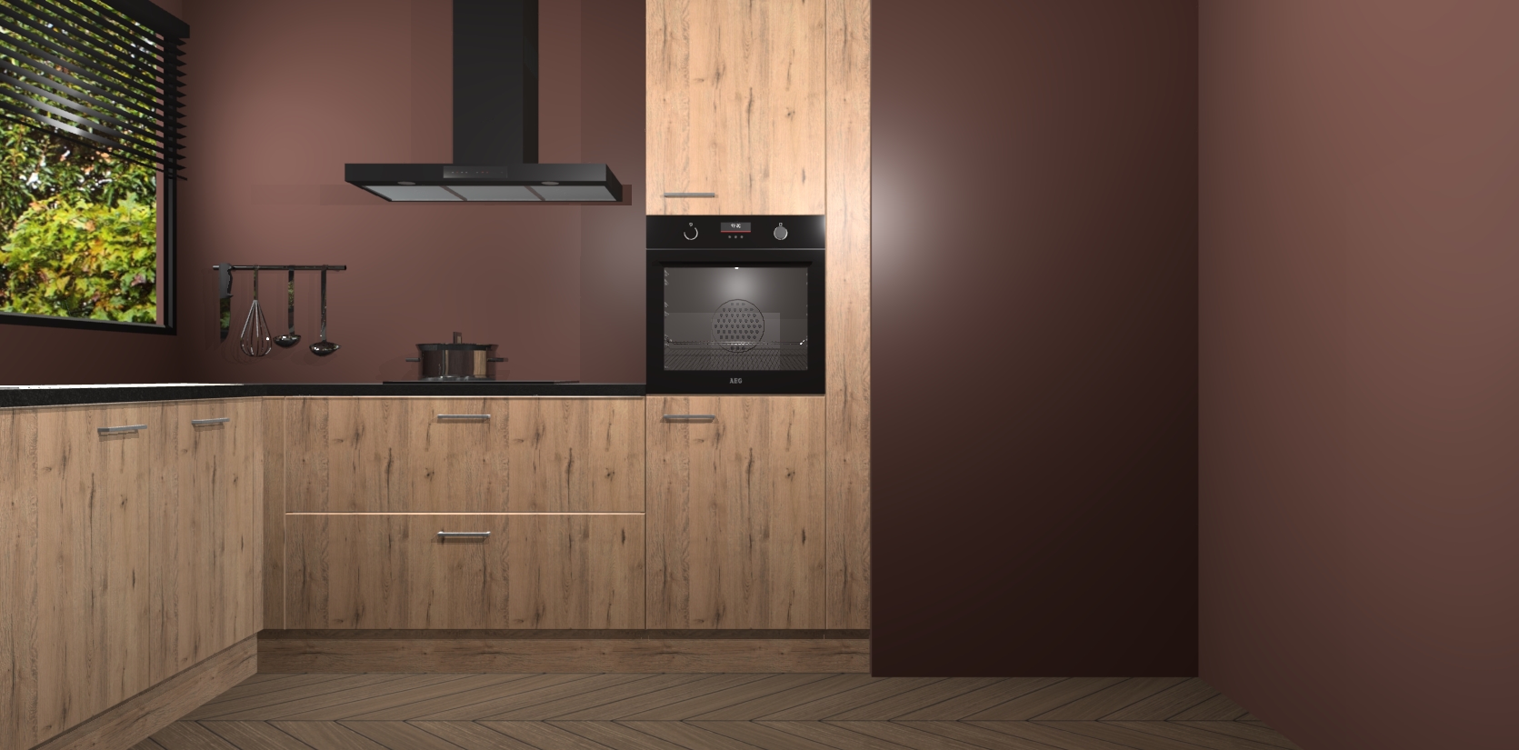 Met een modern, tijdloos design en ruime opslagruimte, zult u zich in no-time thuis voelen in uw nieuwe keuken. Uw leven wordt eenvoudiger met de soft-close deuren die voor het ultieme stille comfort zorgen - geen geluid dat u stoort terwijl u kookt. Ook is de keuken voorzien van 5 ingebouwde apparaten: een oven, inductie kookplaat, afzuigkap, vaatwasser en koelkast. Deze kunnen gemakkelijk na bestelling worden bijgewerkt naar AEG - waardoor uw luxe ervaring compleet is.