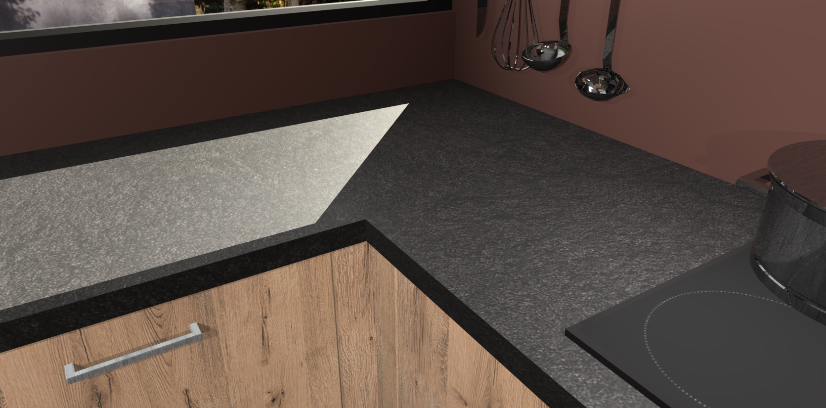 - Bij een hoekwerkblad zijn de hoeken in gevreesd en op maat gemaakt