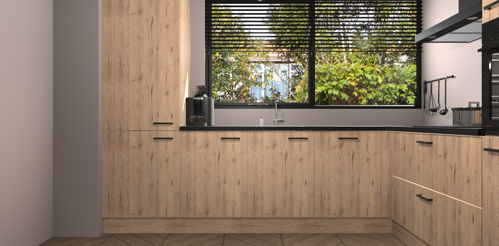 Wij presenteren de revolutie in keukens: de madera natuur keuken Vogar. Met modern design, een tijdloos uiterlijk en kasten die al voor gemonteerd worden geleverd, laat deze stijlvolle keuken uw kookervaring op een hele nieuwe manier transformeren.