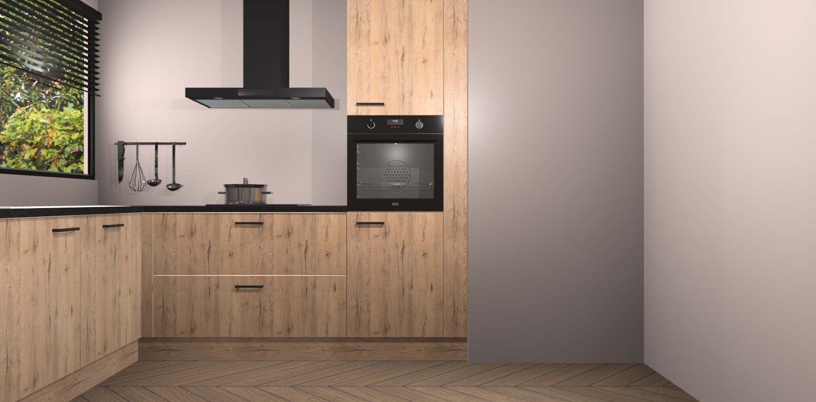 Met een modern, tijdloos design en ruime opslagruimte, zult u zich in no-time thuis voelen in uw nieuwe keuken. Uw leven wordt eenvoudiger met de soft-close deuren die voor het ultieme stille comfort zorgen - geen geluid dat u stoort terwijl u kookt. Ook is de keuken voorzien van 5 ingebouwde apparaten: een oven, inductie kookplaat, afzuigkap, vaatwasser en koelkast. Deze kunnen gemakkelijk na bestelling worden bijgewerkt naar AEG - waardoor uw luxe ervaring compleet is.