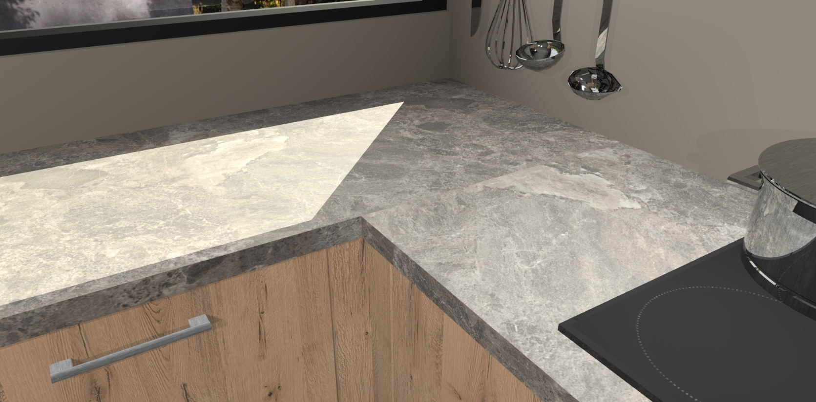 - Bij een hoekwerkblad zijn de hoeken in gevreesd en op maat gemaakt