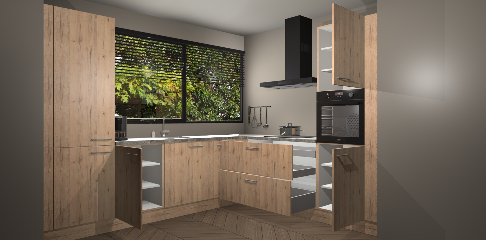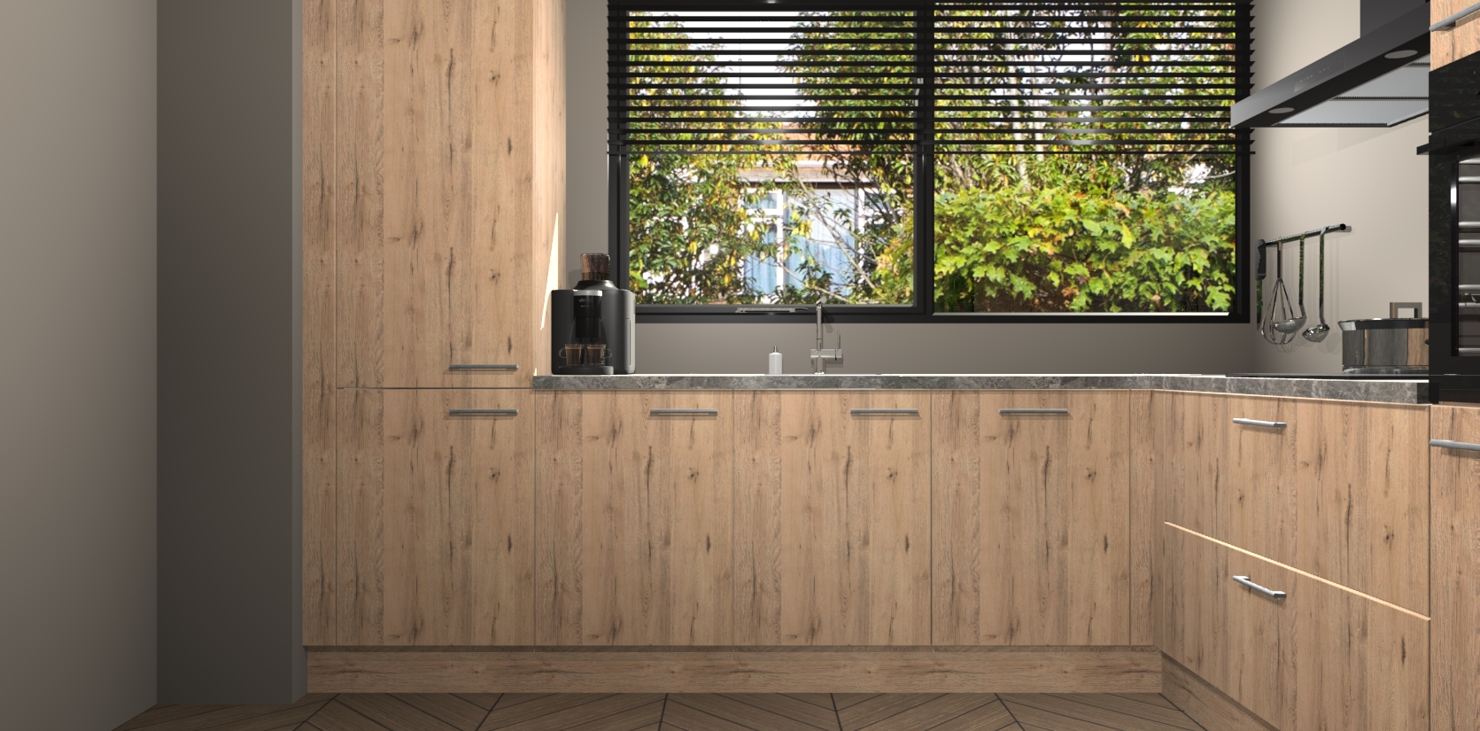 Wij presenteren de revolutie in keukens: de madera natuur keuken Vogar. Met modern design, een tijdloos uiterlijk en kasten die al voor gemonteerd worden geleverd, laat deze stijlvolle keuken uw kookervaring op een hele nieuwe manier transformeren.