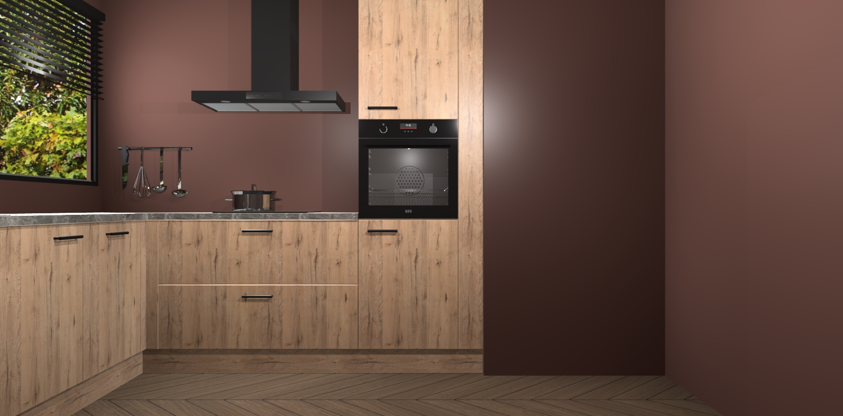 Met een modern, tijdloos design en ruime opslagruimte, zult u zich in no-time thuis voelen in uw nieuwe keuken. Uw leven wordt eenvoudiger met de soft-close deuren die voor het ultieme stille comfort zorgen - geen geluid dat u stoort terwijl u kookt. Ook is de keuken voorzien van 5 ingebouwde apparaten: een oven, inductie kookplaat, afzuigkap, vaatwasser en koelkast. Deze kunnen gemakkelijk na bestelling worden bijgewerkt naar AEG - waardoor uw luxe ervaring compleet is.
