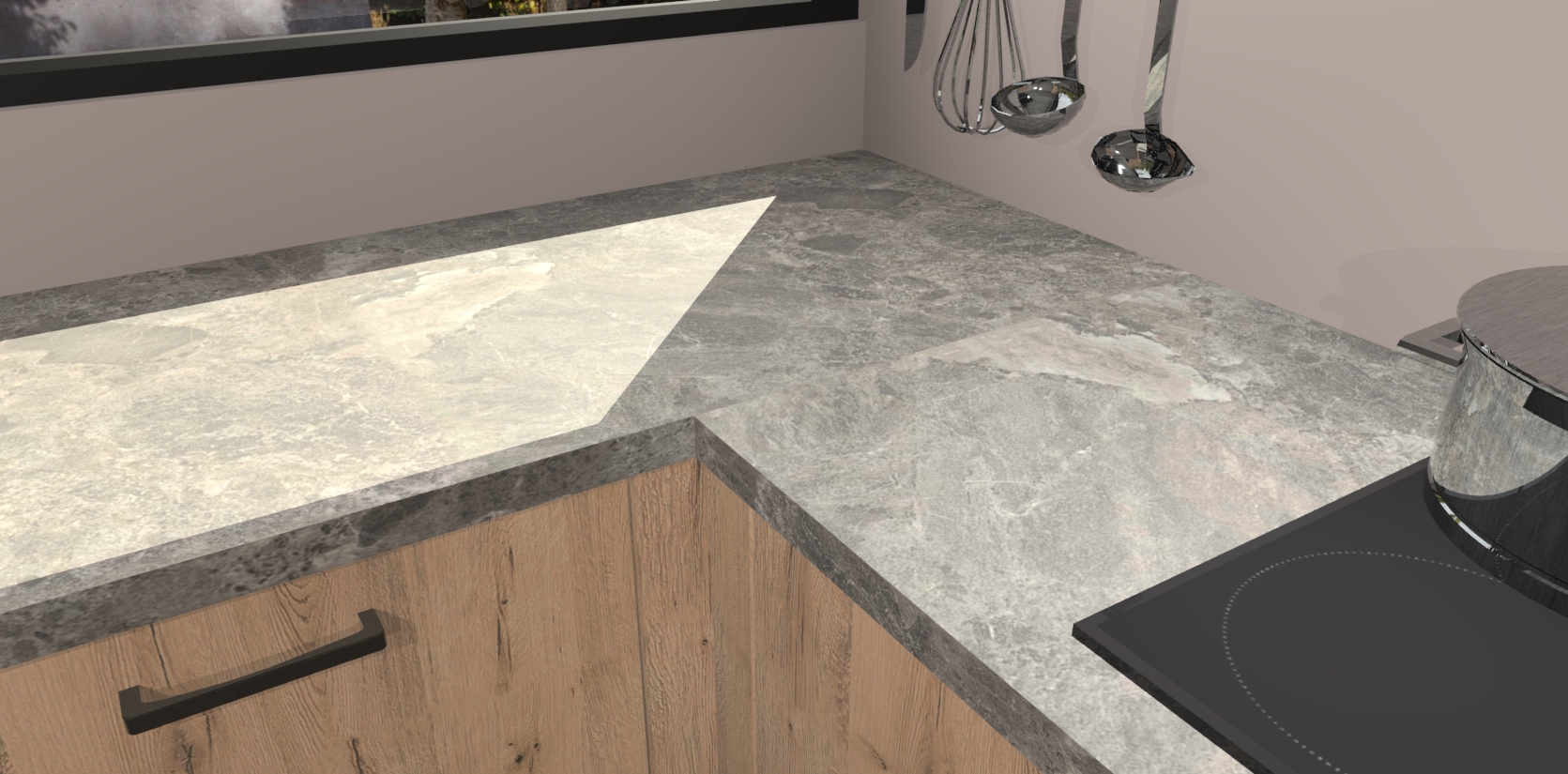 - Bij een hoekwerkblad zijn de hoeken in gevreesd en op maat gemaakt