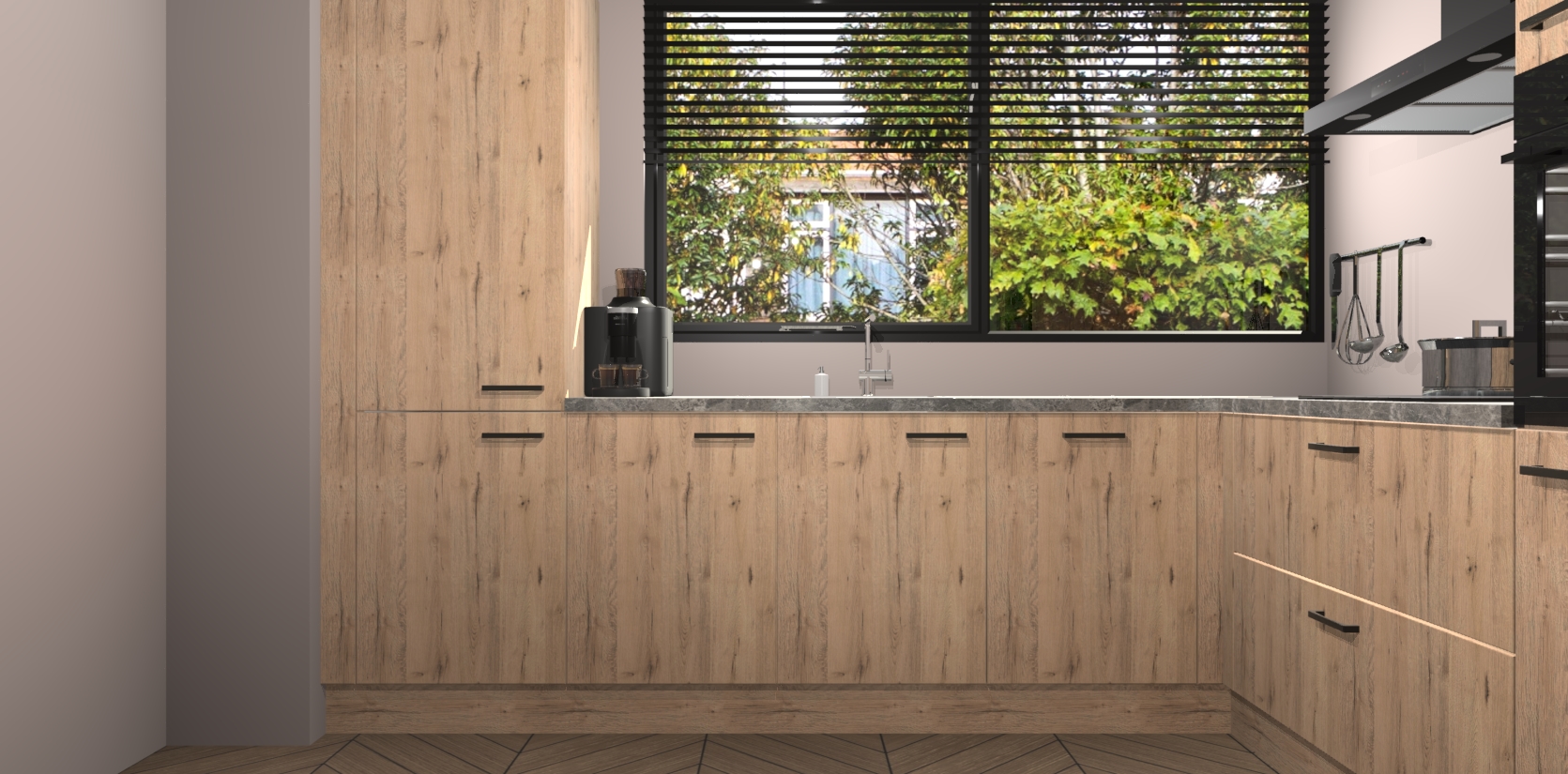 Wij presenteren de revolutie in keukens: de madera natuur keuken Vogar. Met modern design, een tijdloos uiterlijk en kasten die al voor gemonteerd worden geleverd, laat deze stijlvolle keuken uw kookervaring op een hele nieuwe manier transformeren.