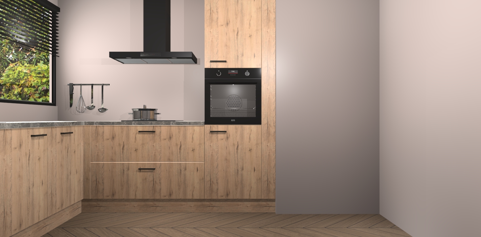 Met een modern, tijdloos design en ruime opslagruimte, zult u zich in no-time thuis voelen in uw nieuwe keuken. Uw leven wordt eenvoudiger met de soft-close deuren die voor het ultieme stille comfort zorgen - geen geluid dat u stoort terwijl u kookt. Ook is de keuken voorzien van 5 ingebouwde apparaten: een oven, inductie kookplaat, afzuigkap, vaatwasser en koelkast. Deze kunnen gemakkelijk na bestelling worden bijgewerkt naar AEG - waardoor uw luxe ervaring compleet is.