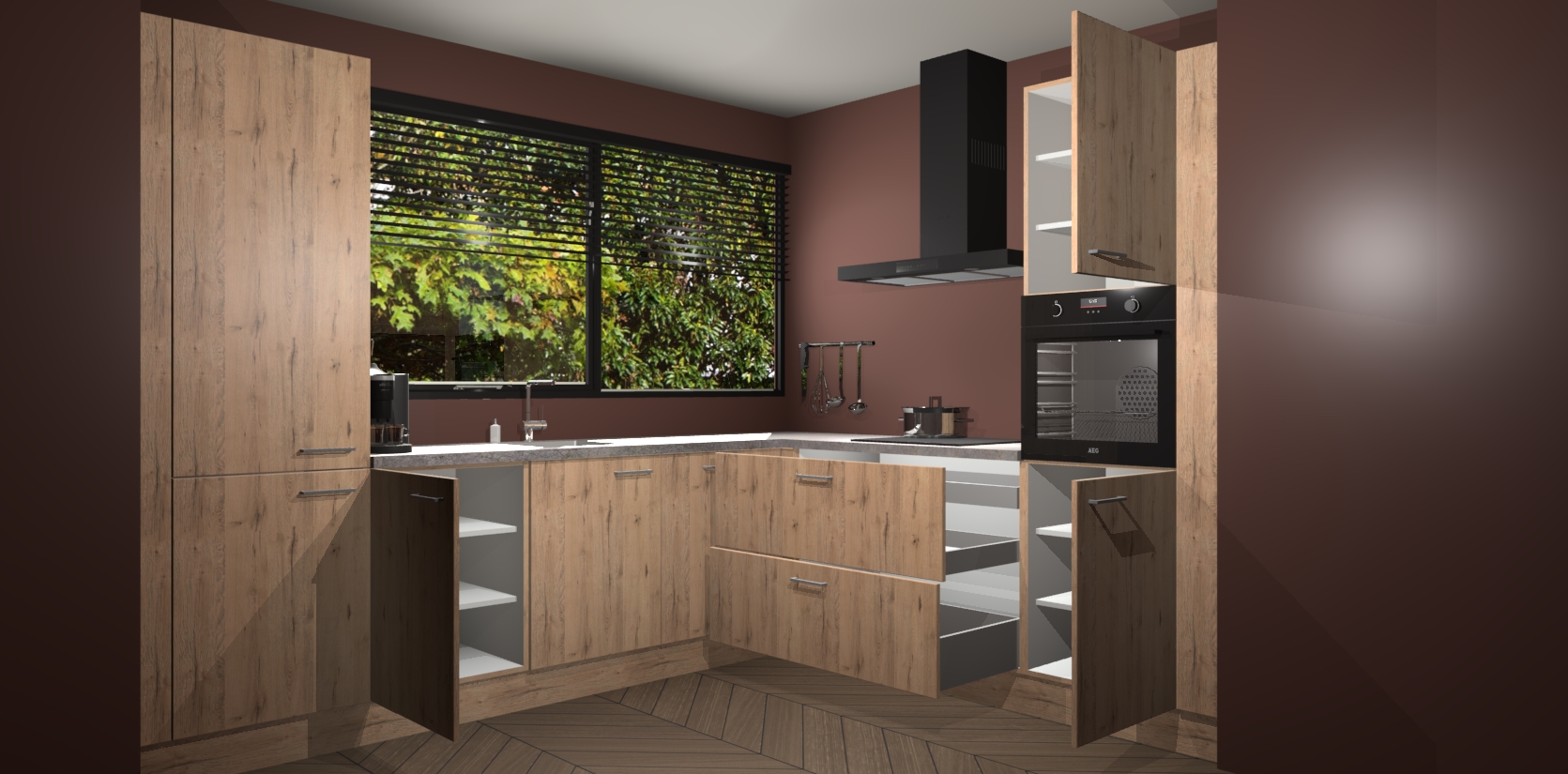 Wij presenteren de revolutie in keukens: de madera natuur keuken Vogar. Met modern design, een tijdloos uiterlijk en kasten die al voor gemonteerd worden geleverd, laat deze stijlvolle keuken uw kookervaring op een hele nieuwe manier transformeren.