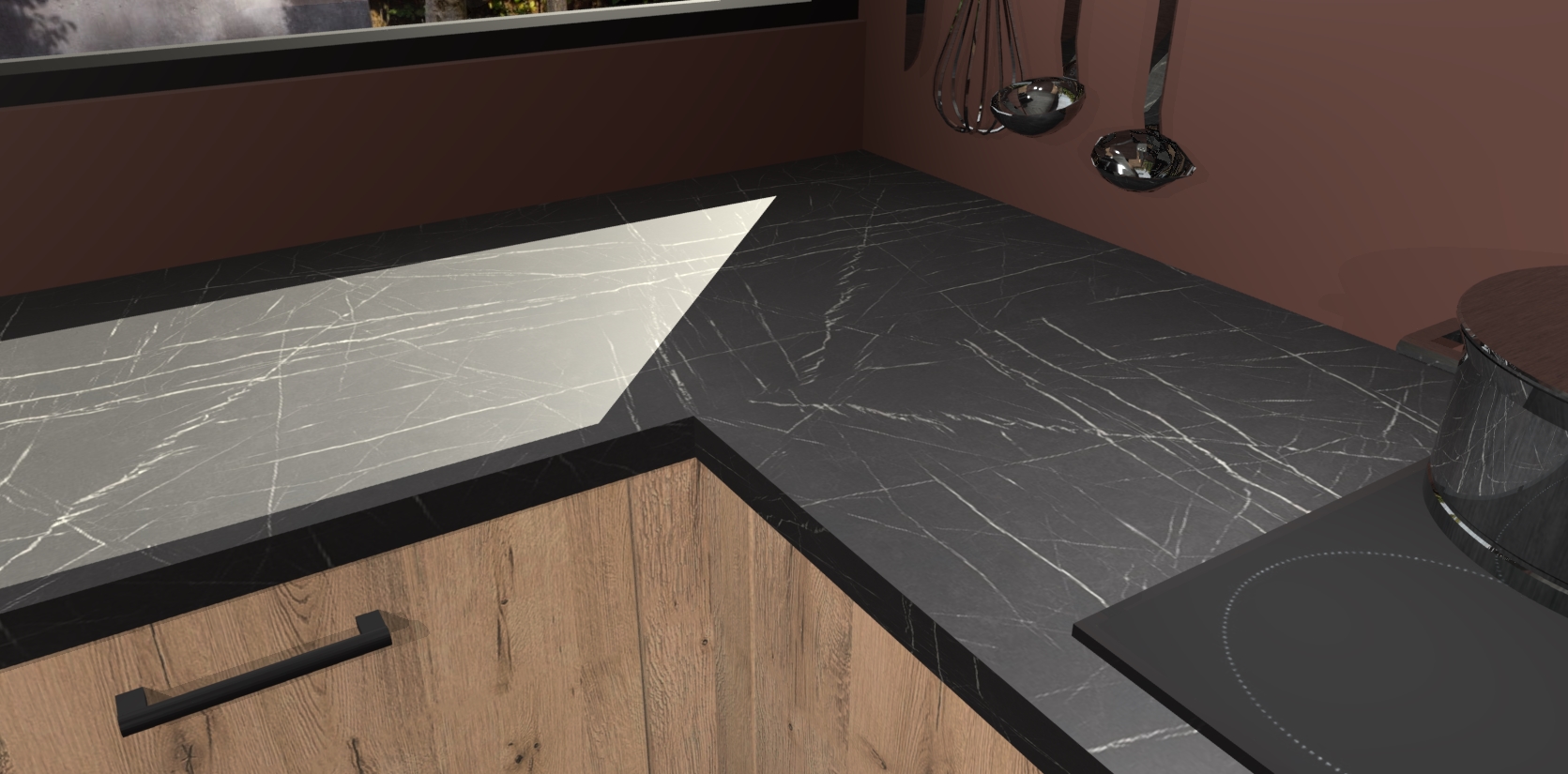- Bij een hoekwerkblad zijn de hoeken in gevreesd en op maat gemaakt