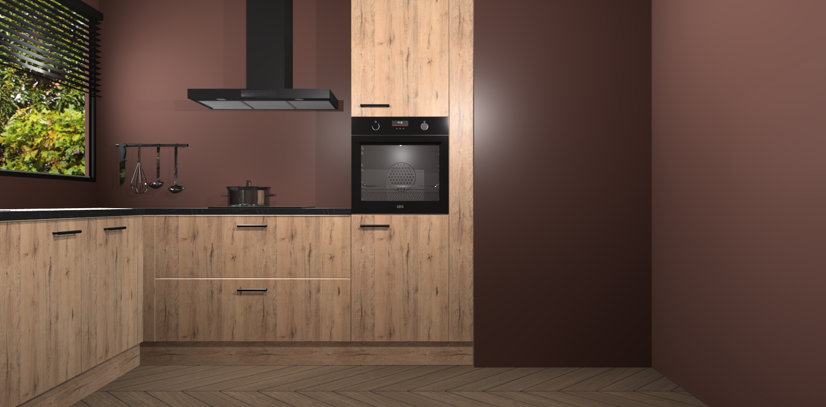 Met een modern, tijdloos design en ruime opslagruimte, zult u zich in no-time thuis voelen in uw nieuwe keuken. Uw leven wordt eenvoudiger met de soft-close deuren die voor het ultieme stille comfort zorgen - geen geluid dat u stoort terwijl u kookt. Ook is de keuken voorzien van 5 ingebouwde apparaten: een oven, inductie kookplaat, afzuigkap, vaatwasser en koelkast. Deze kunnen gemakkelijk na bestelling worden bijgewerkt naar AEG - waardoor uw luxe ervaring compleet is.