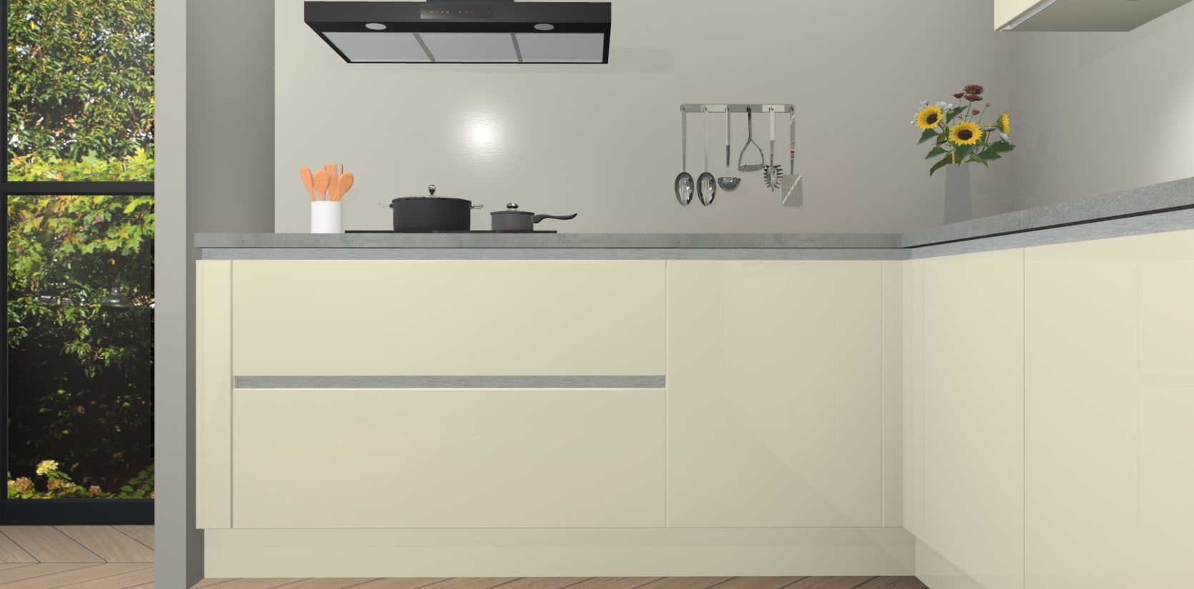 Inclusief plinten, stelpoten en werkblad