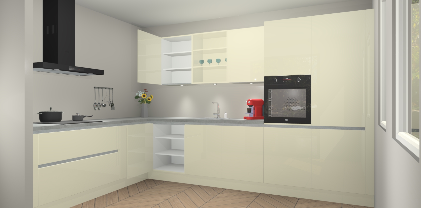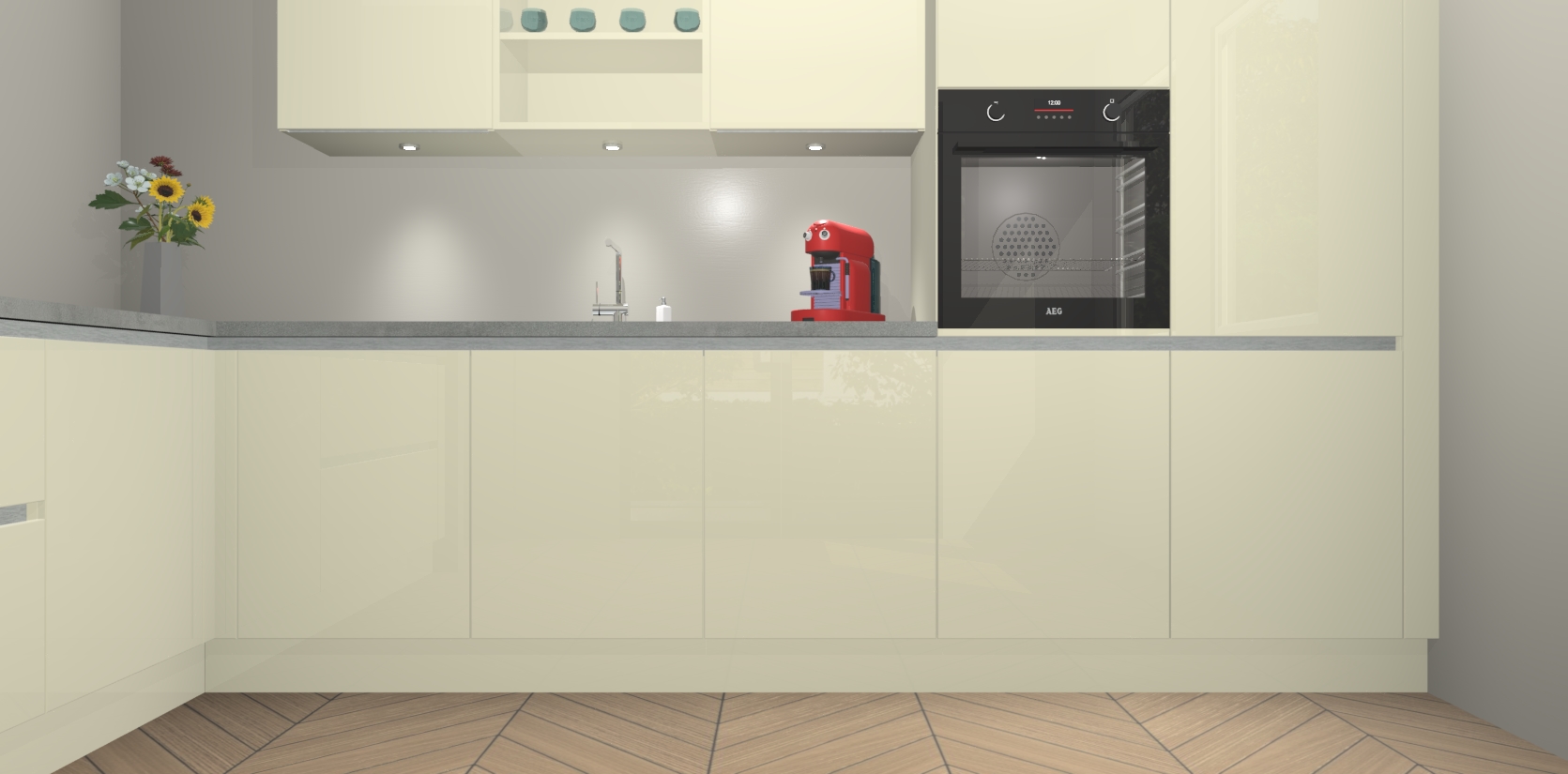 De Magnolia hoogglans greeploze keuken Gotenburg is zo ontworpen dat u alle mogelijke vormen van opslagruimte kunt genieten. Bovendien heeft u meteen toegang tot vijf ingebouwde apparaten: een oven, inductiekookplaat, afzuigkap, vaatwasser en koelkast. Gewoon upgraden naar AEG na bestelling? Dit kan heel gemakkelijk worden geregeld. De deuren sluiten zacht dankzij zachtsluitende scharnieren en ze houden warmte vast terwijl ze uitzonderlijk stil blijven wanneer ze worden geopend of gesloten.