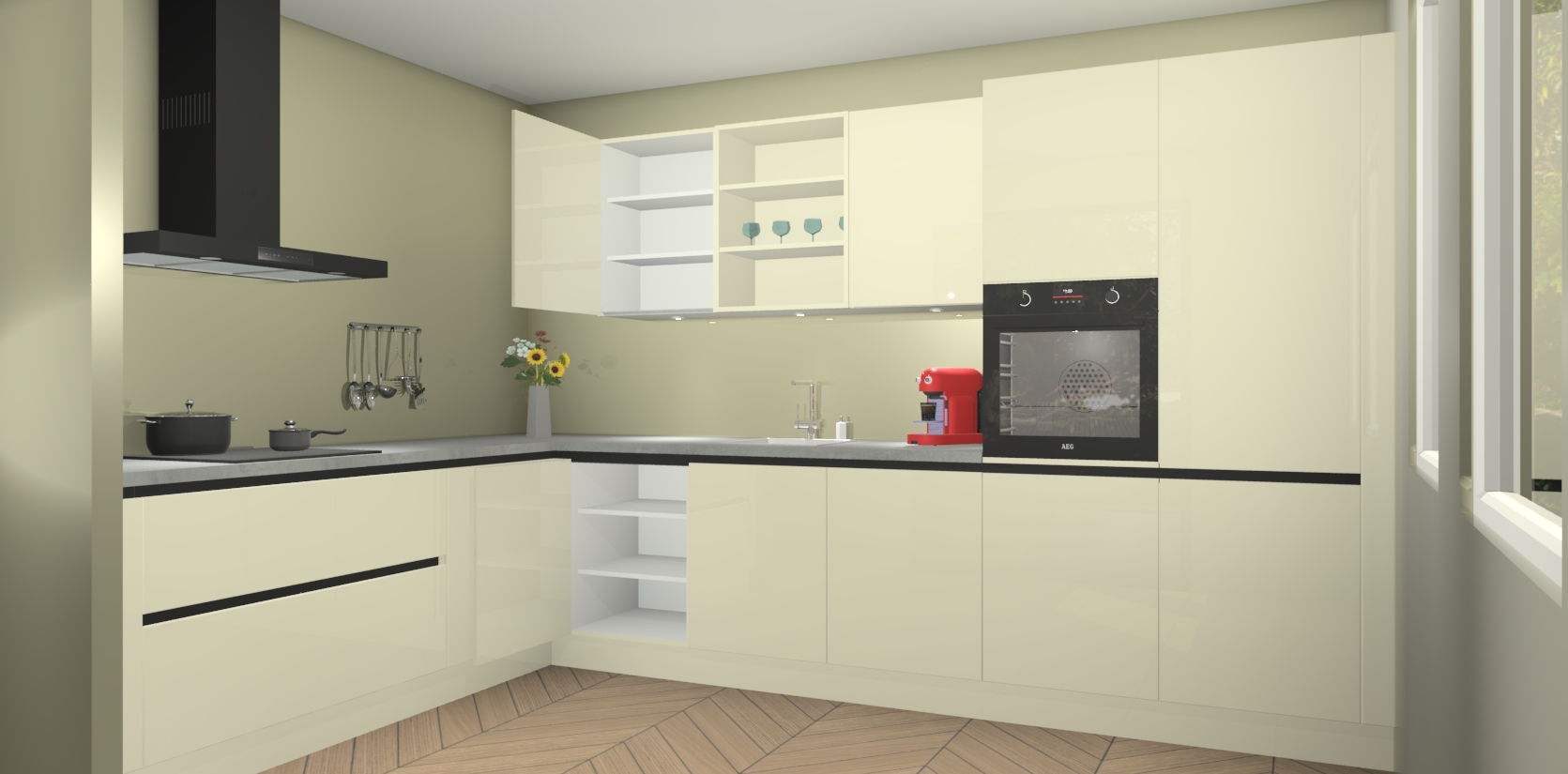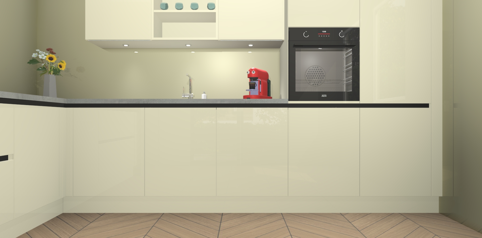 De Magnolia hoogglans greeploze keuken Gotenburg is zo ontworpen dat u alle mogelijke vormen van opslagruimte kunt genieten. Bovendien heeft u meteen toegang tot vijf ingebouwde apparaten: een oven, inductiekookplaat, afzuigkap, vaatwasser en koelkast. Gewoon upgraden naar AEG na bestelling? Dit kan heel gemakkelijk worden geregeld. De deuren sluiten zacht dankzij zachtsluitende scharnieren en ze houden warmte vast terwijl ze uitzonderlijk stil blijven wanneer ze worden geopend of gesloten.