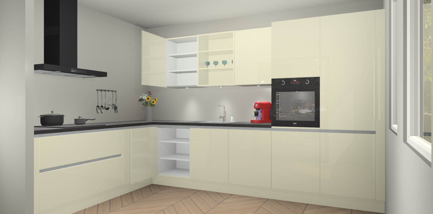 De Magnolia hoogglans greeploze keuken Gotenburg is zo ontworpen dat u alle mogelijke vormen van opslagruimte kunt genieten. Bovendien heeft u meteen toegang tot vijf ingebouwde apparaten: een oven, inductiekookplaat, afzuigkap, vaatwasser en koelkast. Gewoon upgraden naar AEG na bestelling? Dit kan heel gemakkelijk worden geregeld. De deuren sluiten zacht dankzij zachtsluitende scharnieren en ze houden warmte vast terwijl ze uitzonderlijk stil blijven wanneer ze worden geopend of gesloten.
