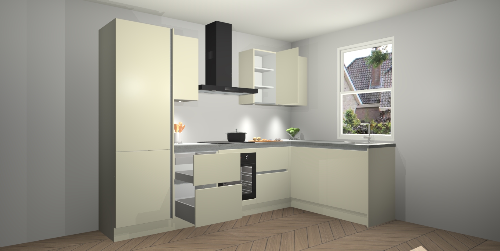 Inclusief plinten, stelpoten en werkblad