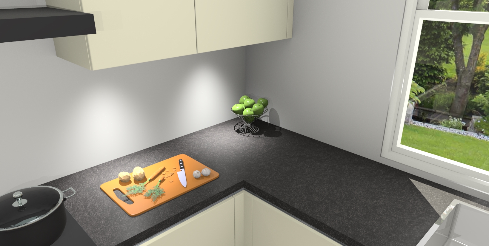 - Bij een hoekwerkblad zijn de hoeken in gevreesd en op maat gemaakt