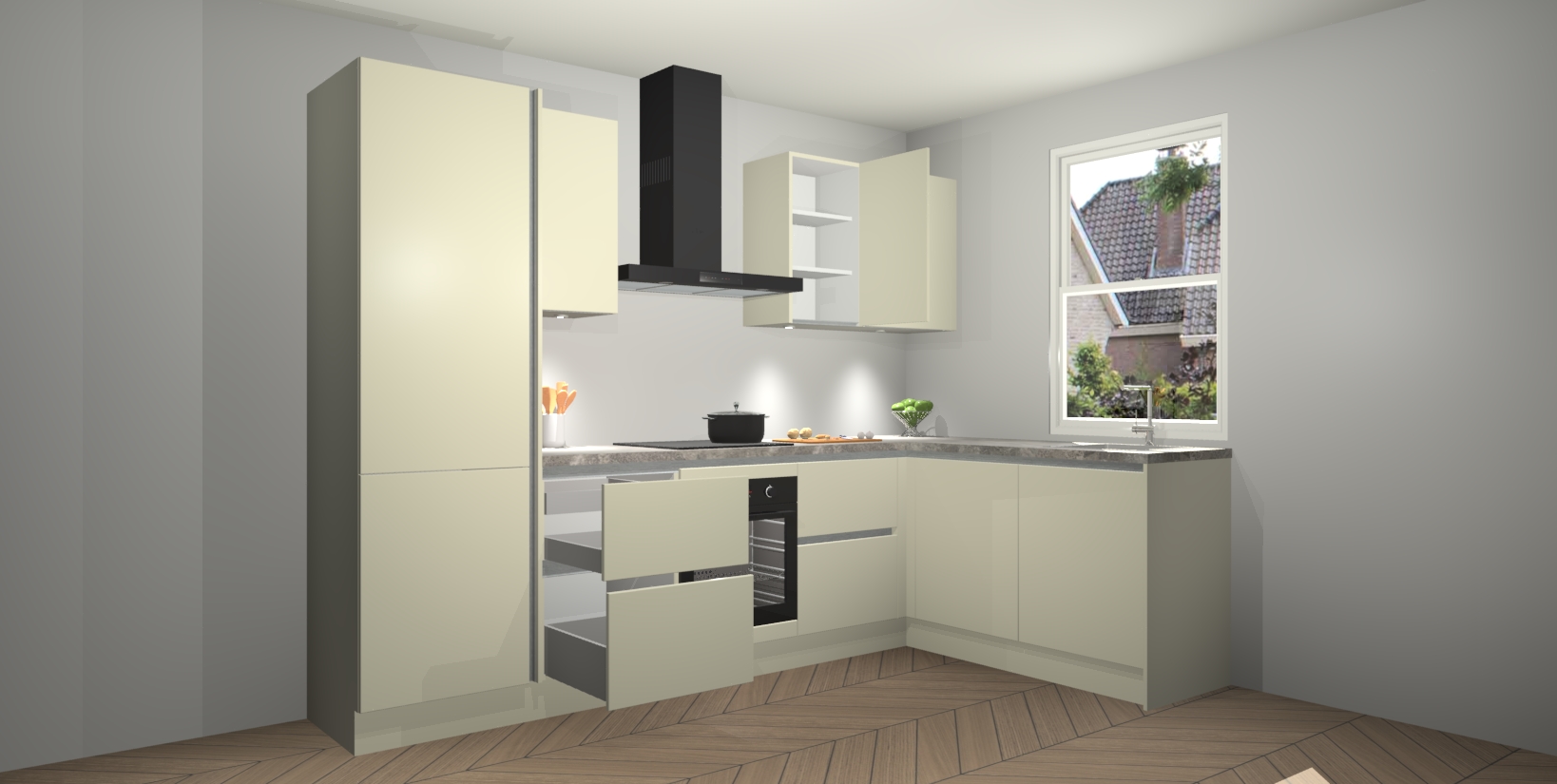 Inclusief plinten, stelpoten en werkblad