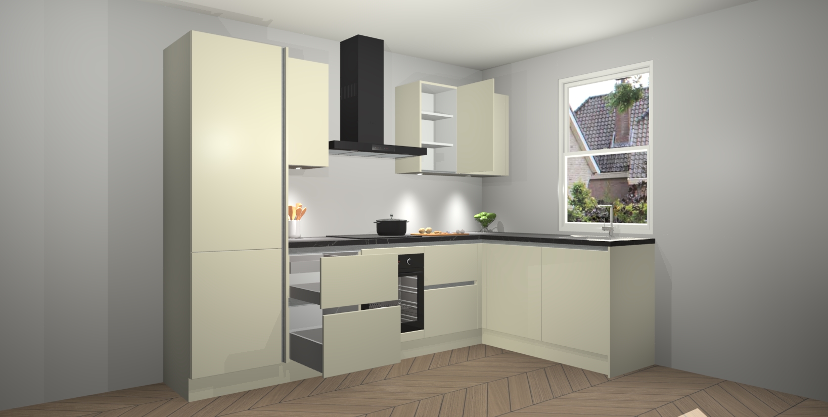 Inclusief plinten, stelpoten en werkblad