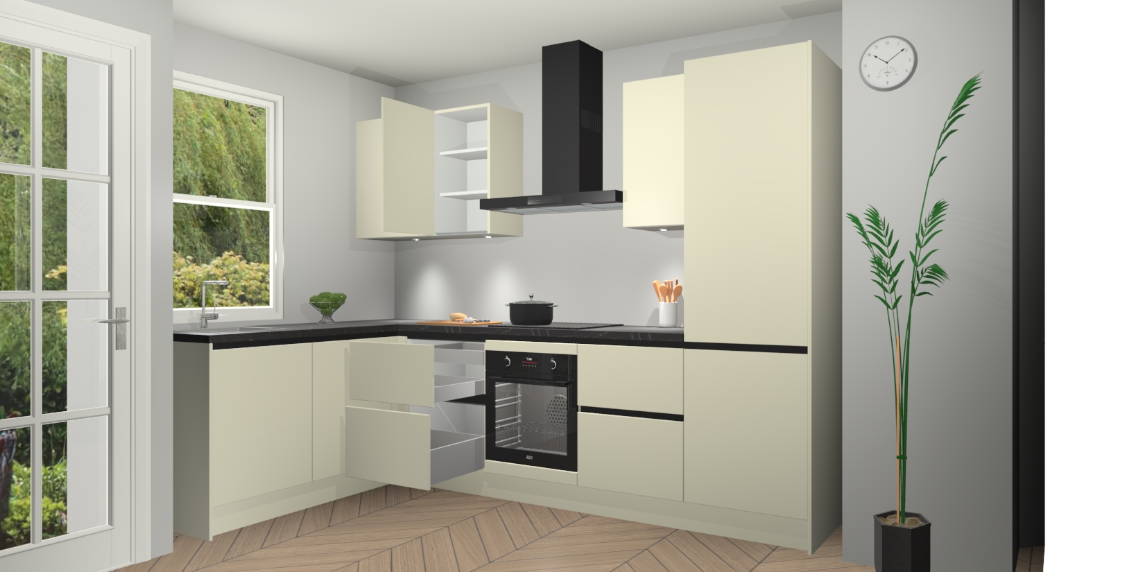 Inclusief plinten, stelpoten en werkblad