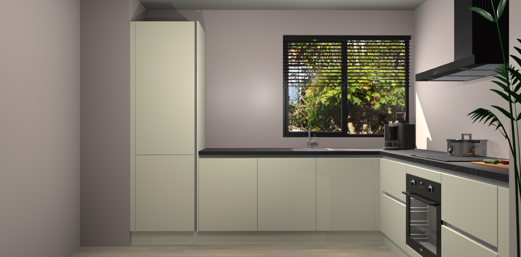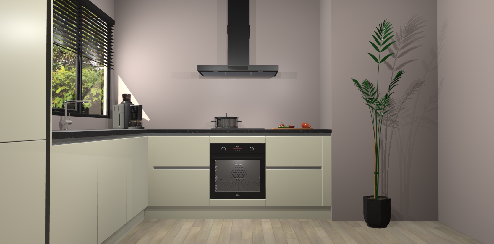Met een modern, tijdloos design en ruime opslagruimte, zult u zich in no-time thuis voelen in uw nieuwe keuken. Uw leven wordt eenvoudiger met de soft-close deuren die voor het ultieme stille comfort zorgen - geen geluid dat u stoort terwijl u kookt. Ook is de keuken voorzien van 5 ingebouwde apparaten: een oven, inductie kookplaat, afzuigkap, vaatwasser en koelkast. Deze kunnen gemakkelijk na bestelling worden bijgewerkt naar AEG - waardoor uw luxe ervaring compleet is.