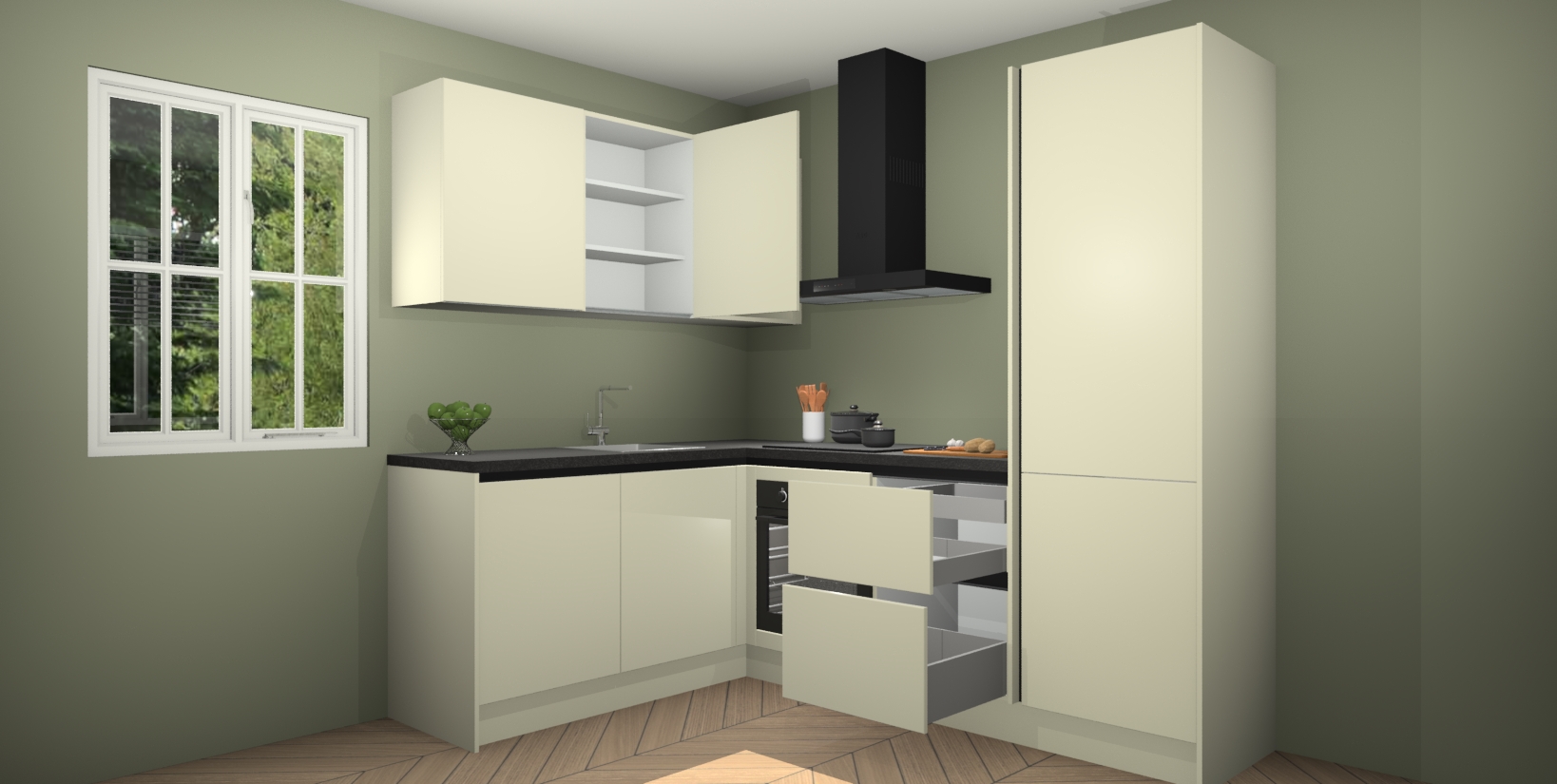 In deze box zijn alle kleuren verzameld van de deuren en werkbladen. Vraag de gratis kleurenbox aan en kijk thuis rustig verder!