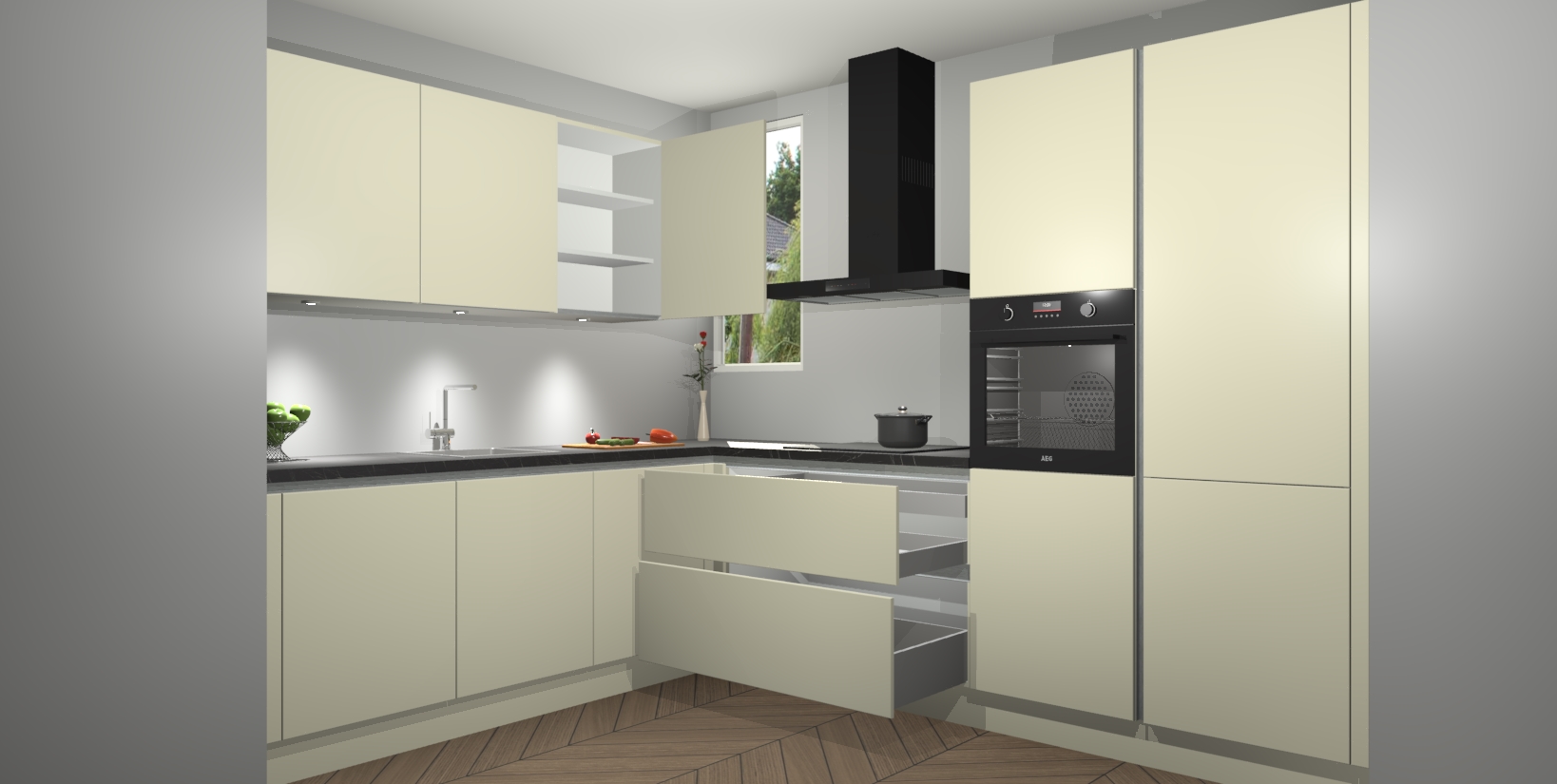 In deze box zijn alle kleuren verzameld van de deuren en werkbladen. Vraag de gratis kleurenbox aan en kijk thuis rustig verder!