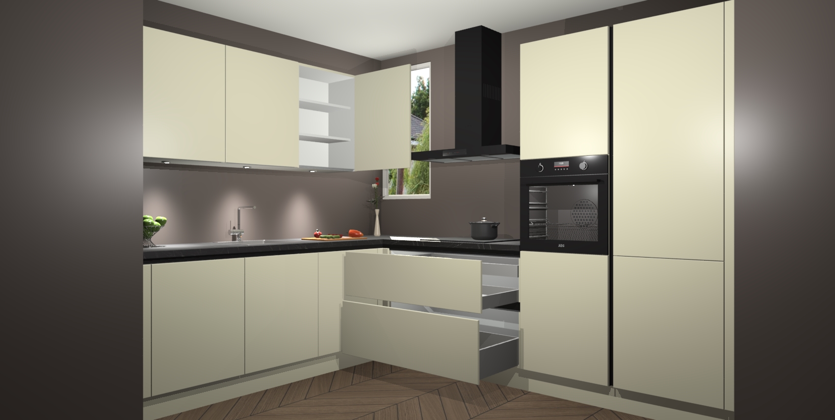 In deze box zijn alle kleuren verzameld van de deuren en werkbladen. Vraag de gratis kleurenbox aan en kijk thuis rustig verder!