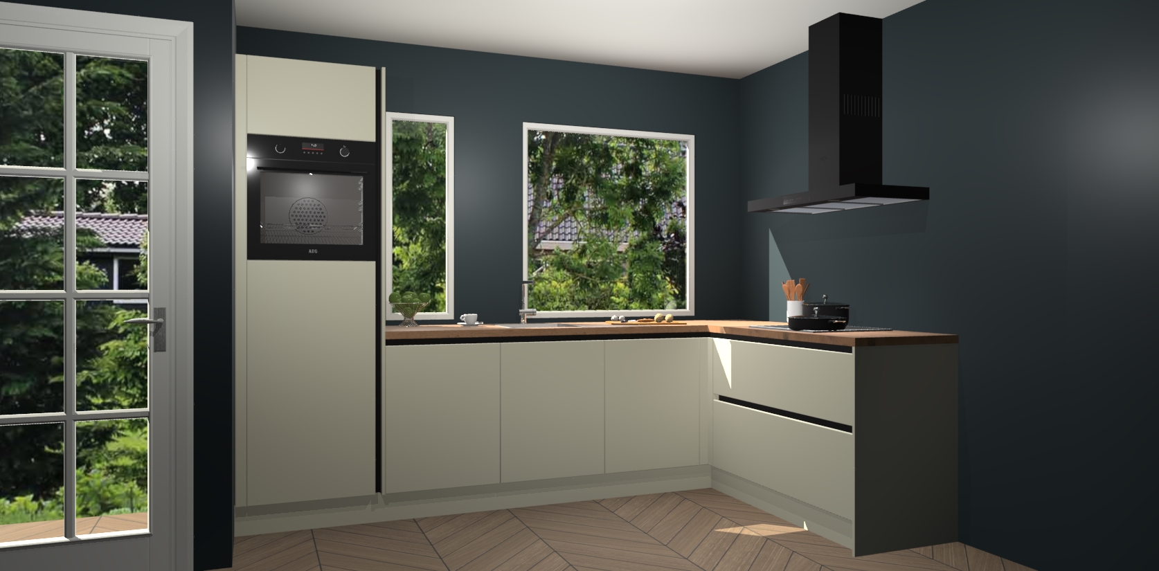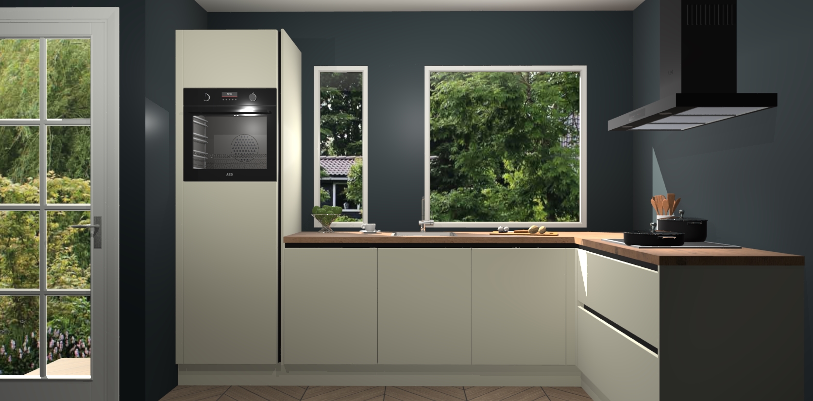 Deze complete keuken wordt geleverd met 5 inbouwapparaten: een oven, inductiekookplaat, afzuigkap, vaatwasser en koelkast.  De toestellen kunnen na bestelling ook gemakkelijk worden opgewaardeerd naar AEG. Bovendien is elke deur in deze keuken voorzien van handige softclose technologie voor eenvoudig gebruik! Als een leuke toevoeging zit in deze keuken ook een carrousel, zo hoef je niet meer de hoek in duiken om iets te pakken.