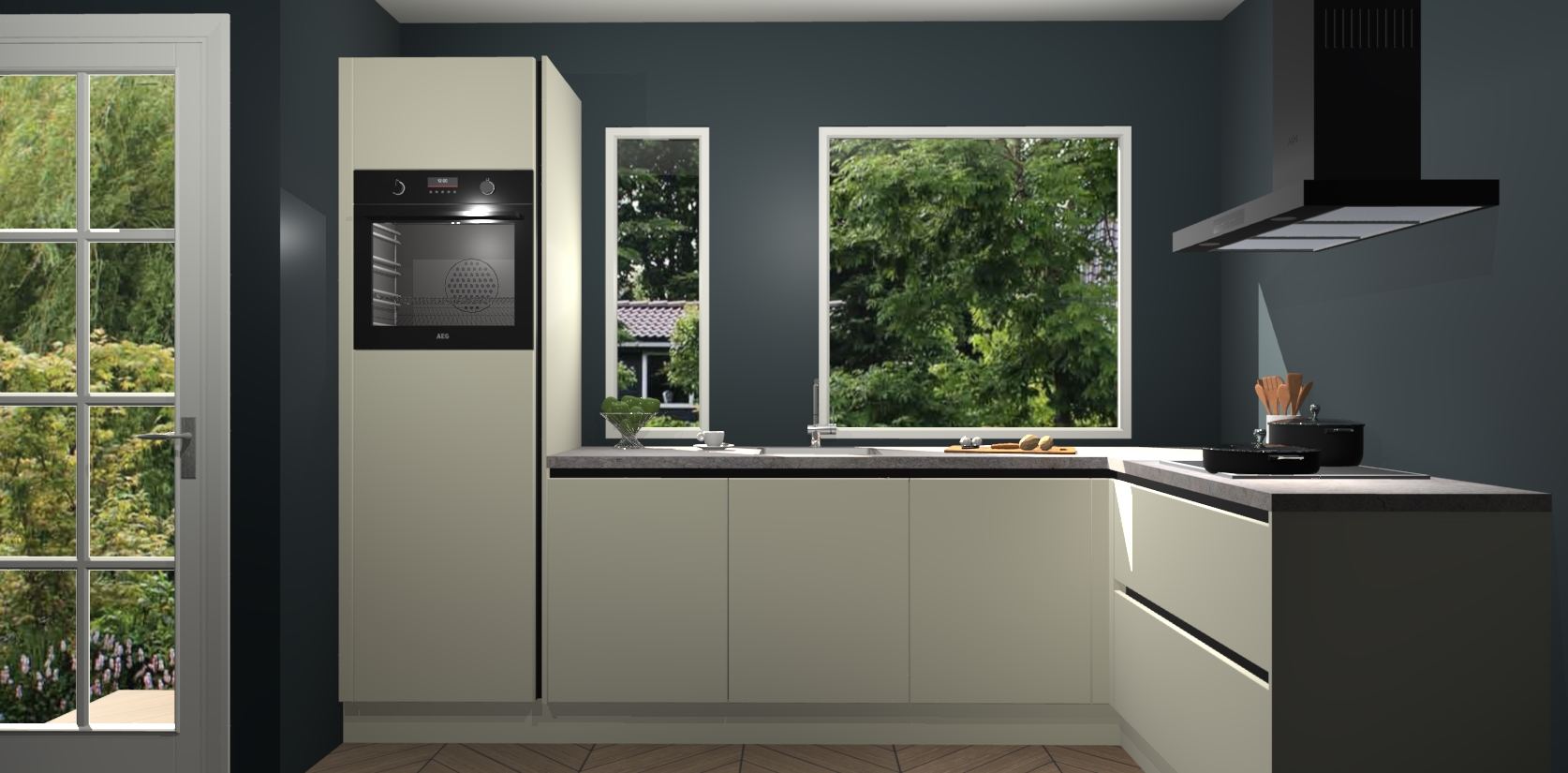 Deze complete keuken wordt geleverd met 5 inbouwapparaten: een oven, inductiekookplaat, afzuigkap, vaatwasser en koelkast. De toestellen kunnen na bestelling ook gemakkelijk worden opgewaardeerd naar AEG. Bovendien is elke deur in deze keuken voorzien van handige softclose technologie voor eenvoudig gebruik! Als een leuke toevoeging zit in deze keuken ook een carrousel, zo hoef je niet meer de hoek in duiken om iets te pakken.