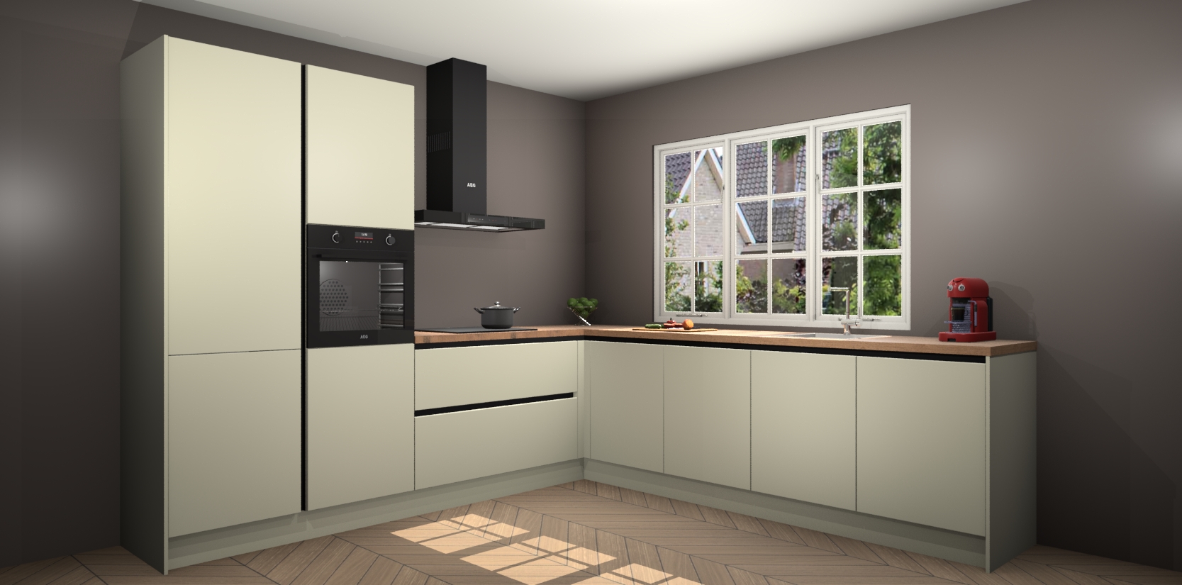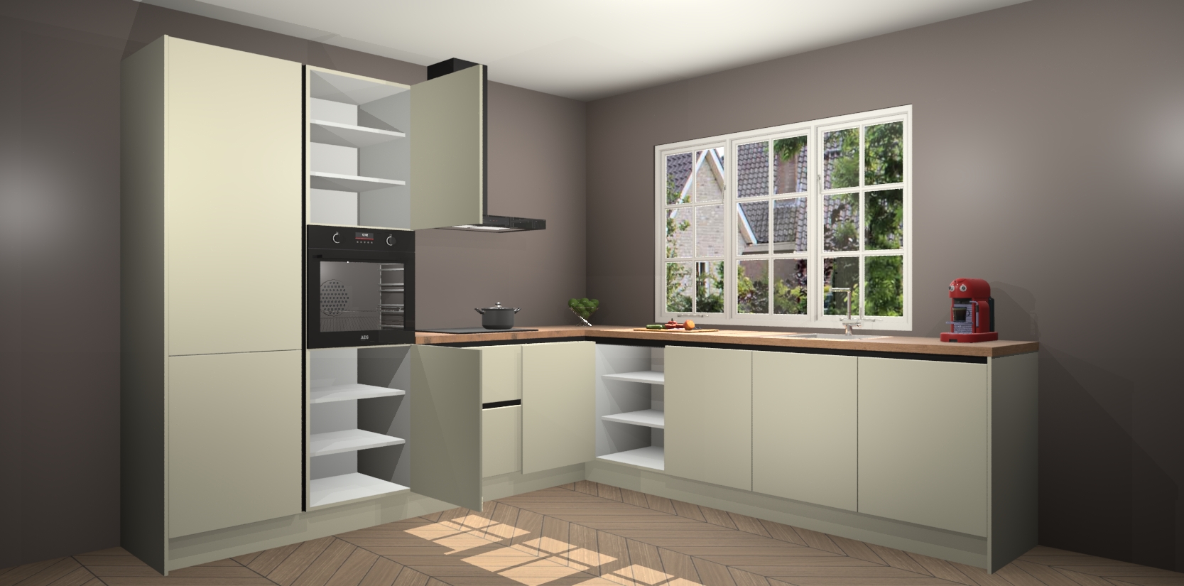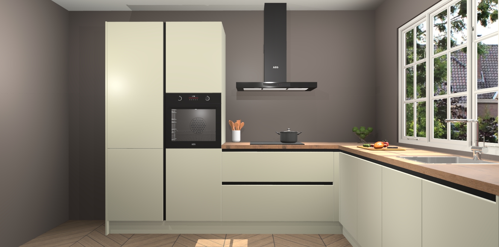 De keuken heeft veel opbergruimte, waardoor u alle ingrediënten gemakkelijk bereikbaar hebt staan. En daarnaast bevat deze volledig uitgeruste keuken ook 5 ingebouwde apparaten: een oven, inductiekookplaat, afzuigkap, vaatwasser en koelkast. Deze zijn heel eenvoudig na bestellen te upgraden naar AEG als u dit wilt. Bovendien zijn de softclose-kastdeuren ideaal; geef ze gewoon even een tikje en ze sluiten automatisch met geruisloze precisie.