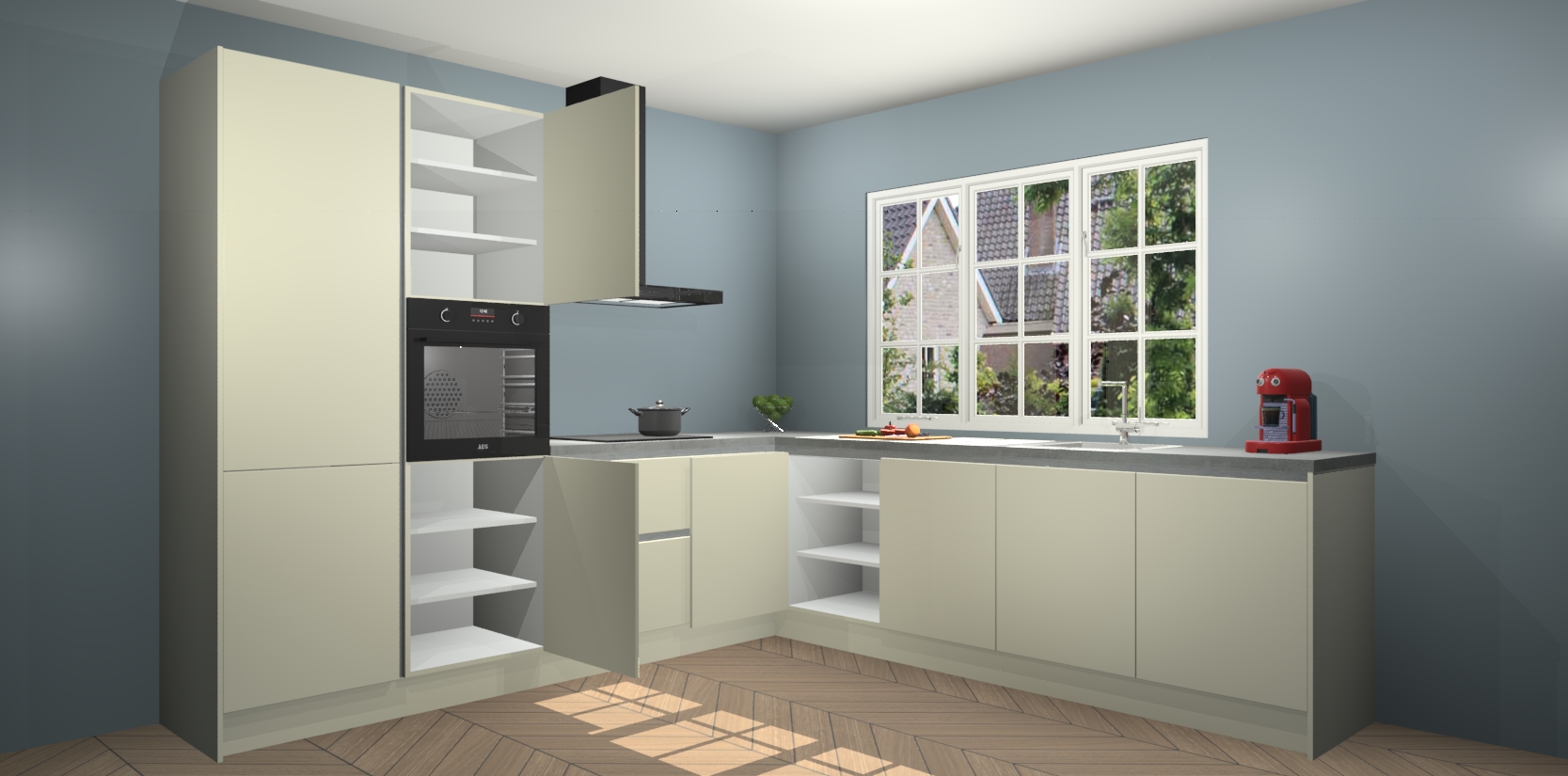 De keuken heeft veel opbergruimte, waardoor u alle ingrediënten gemakkelijk bereikbaar hebt staan. En daarnaast bevat deze volledig uitgeruste keuken ook 5 ingebouwde apparaten: een oven, inductiekookplaat, afzuigkap, vaatwasser en koelkast. Deze zijn heel eenvoudig na bestellen te upgraden naar AEG als u dit wilt. Bovendien zijn de softclose-kastdeuren ideaal; geef ze gewoon even een tikje en ze sluiten automatisch met geruisloze precisie.