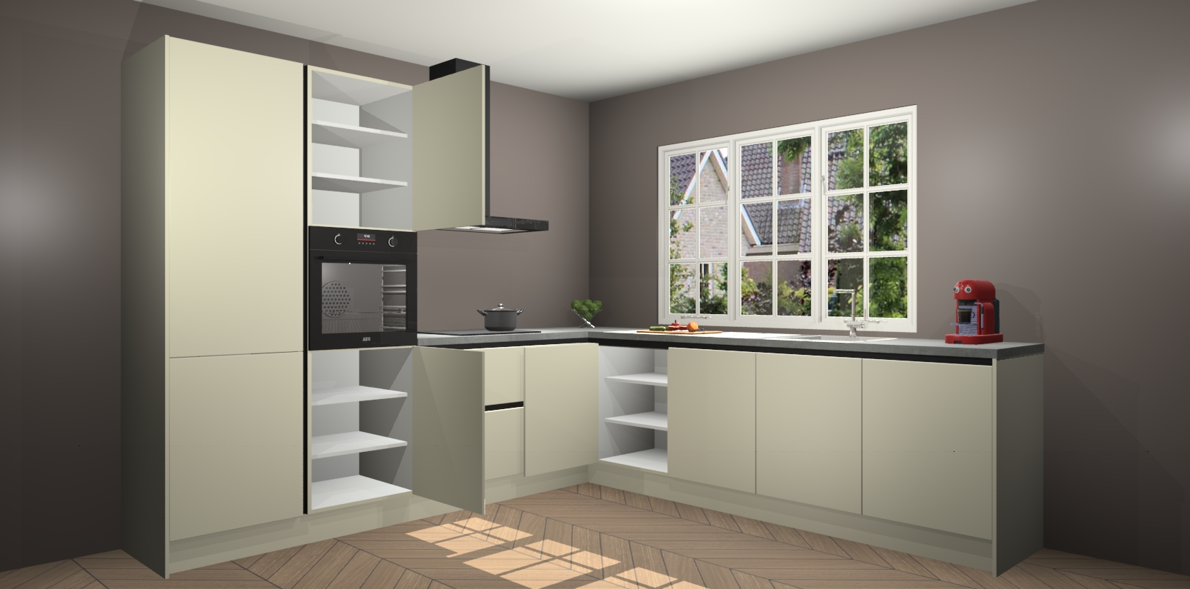 De keuken heeft veel opbergruimte, waardoor u alle ingrediënten gemakkelijk bereikbaar hebt staan. En daarnaast bevat deze volledig uitgeruste keuken ook 5 ingebouwde apparaten: een oven, inductiekookplaat, afzuigkap, vaatwasser en koelkast. Deze zijn heel eenvoudig na bestellen te upgraden naar AEG als u dit wilt. Bovendien zijn de softclose-kastdeuren ideaal; geef ze gewoon even een tikje en ze sluiten automatisch met geruisloze precisie.