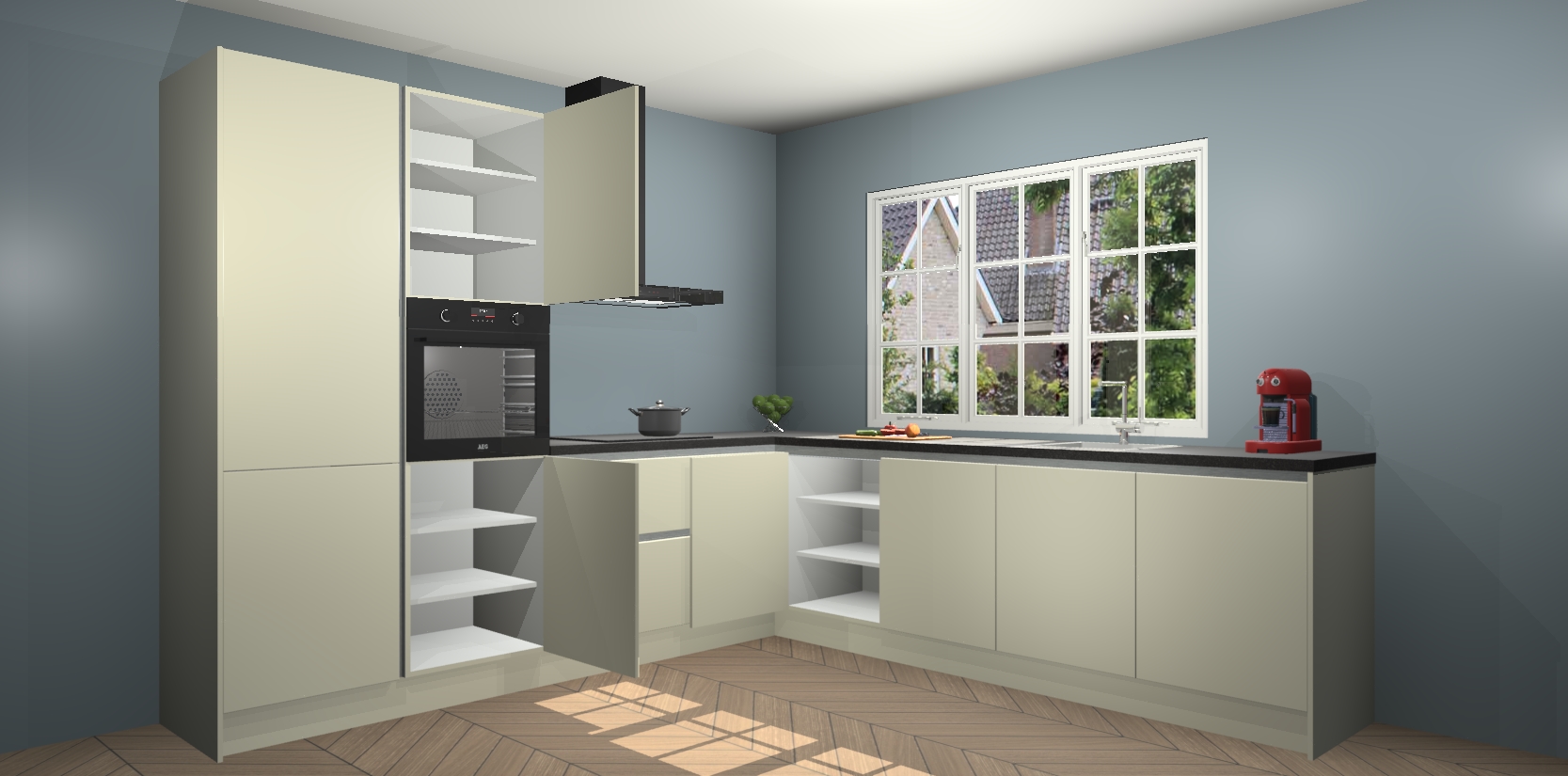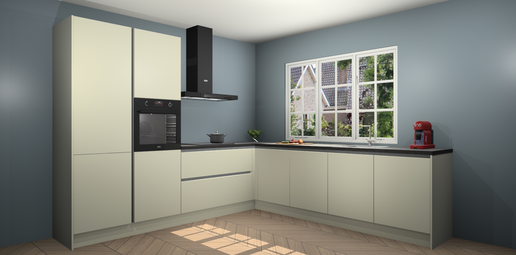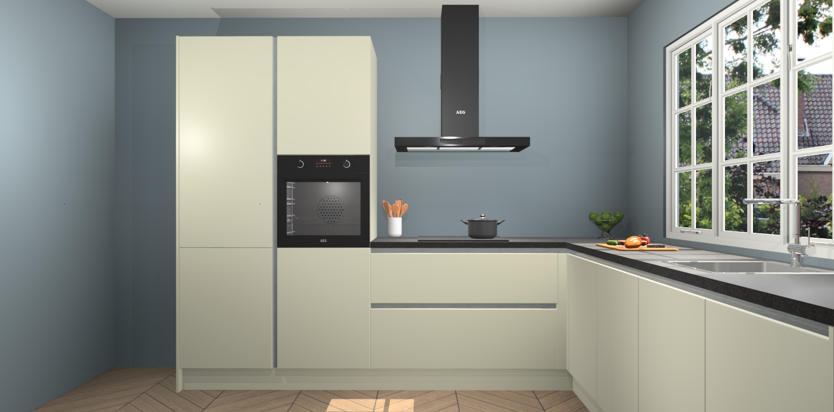 De keuken heeft veel opbergruimte, waardoor u alle ingrediënten gemakkelijk bereikbaar hebt staan. En daarnaast bevat deze volledig uitgeruste keuken ook 5 ingebouwde apparaten: een oven, inductiekookplaat, afzuigkap, vaatwasser en koelkast. Deze zijn heel eenvoudig na bestellen te upgraden naar AEG als u dit wilt. Bovendien zijn de softclose-kastdeuren ideaal; geef ze gewoon even een tikje en ze sluiten automatisch met geruisloze precisie.