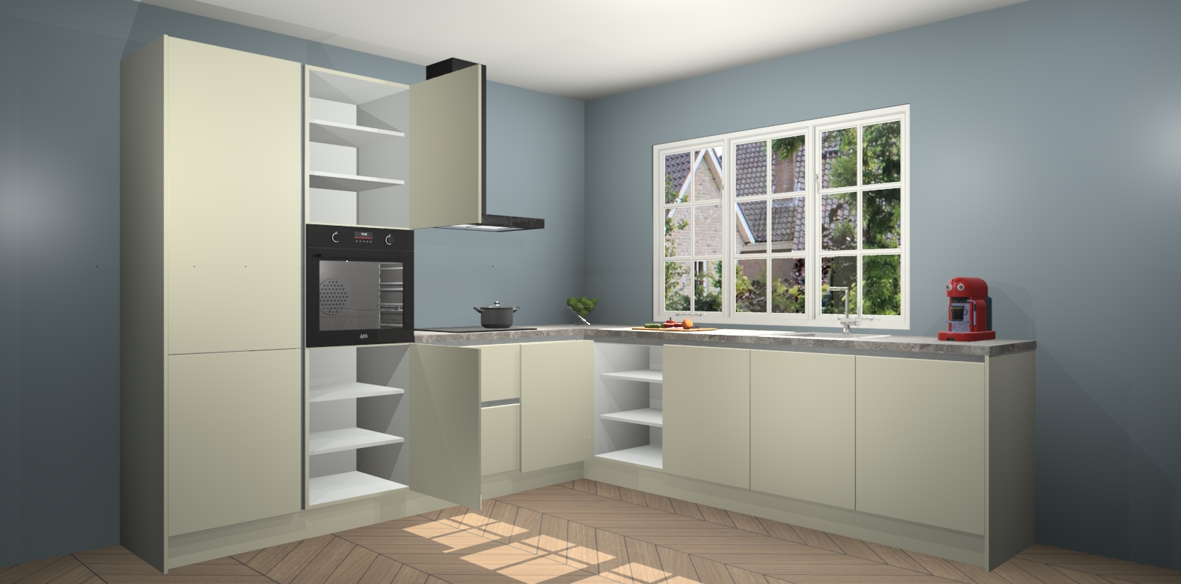 De keuken heeft veel opbergruimte, waardoor u alle ingrediënten gemakkelijk bereikbaar hebt staan. En daarnaast bevat deze volledig uitgeruste keuken ook 5 ingebouwde apparaten: een oven, inductiekookplaat, afzuigkap, vaatwasser en koelkast. Deze zijn heel eenvoudig na bestellen te upgraden naar AEG als u dit wilt. Bovendien zijn de softclose-kastdeuren ideaal; geef ze gewoon even een tikje en ze sluiten automatisch met geruisloze precisie.