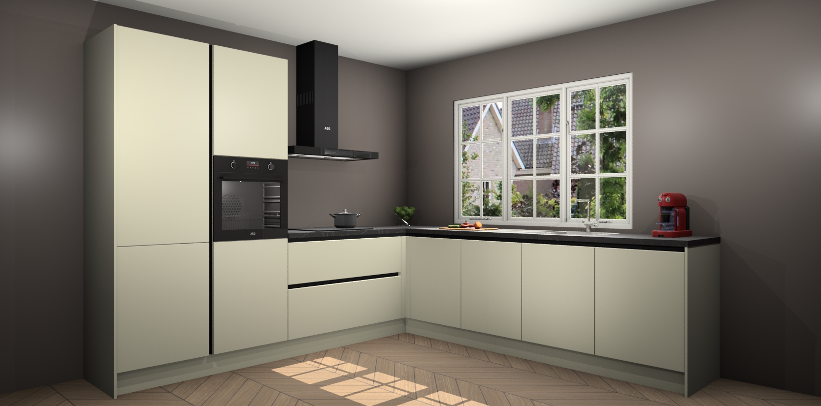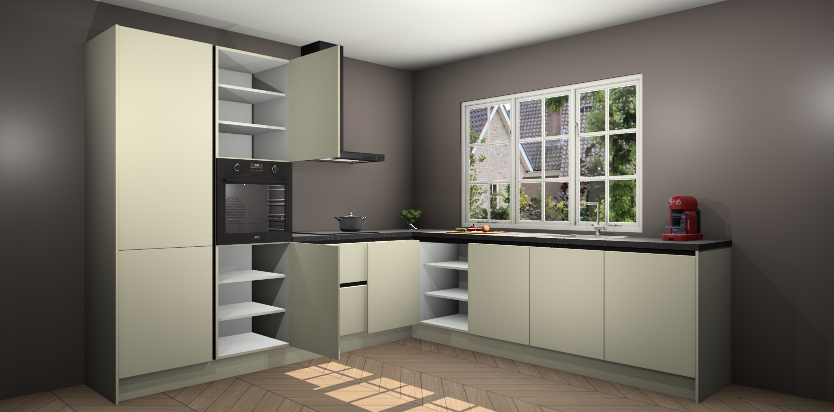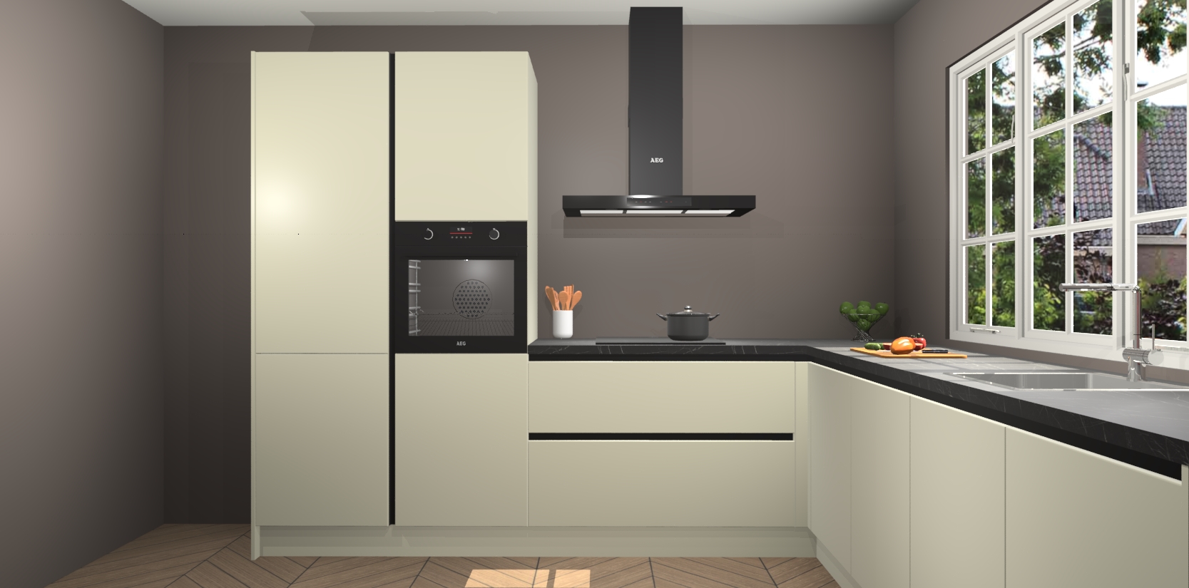 De keuken heeft veel opbergruimte, waardoor u alle ingrediënten gemakkelijk bereikbaar hebt staan. En daarnaast bevat deze volledig uitgeruste keuken ook 5 ingebouwde apparaten: een oven, inductiekookplaat, afzuigkap, vaatwasser en koelkast. Deze zijn heel eenvoudig na bestellen te upgraden naar AEG als u dit wilt. Bovendien zijn de softclose-kastdeuren ideaal; geef ze gewoon even een tikje en ze sluiten automatisch met geruisloze precisie.