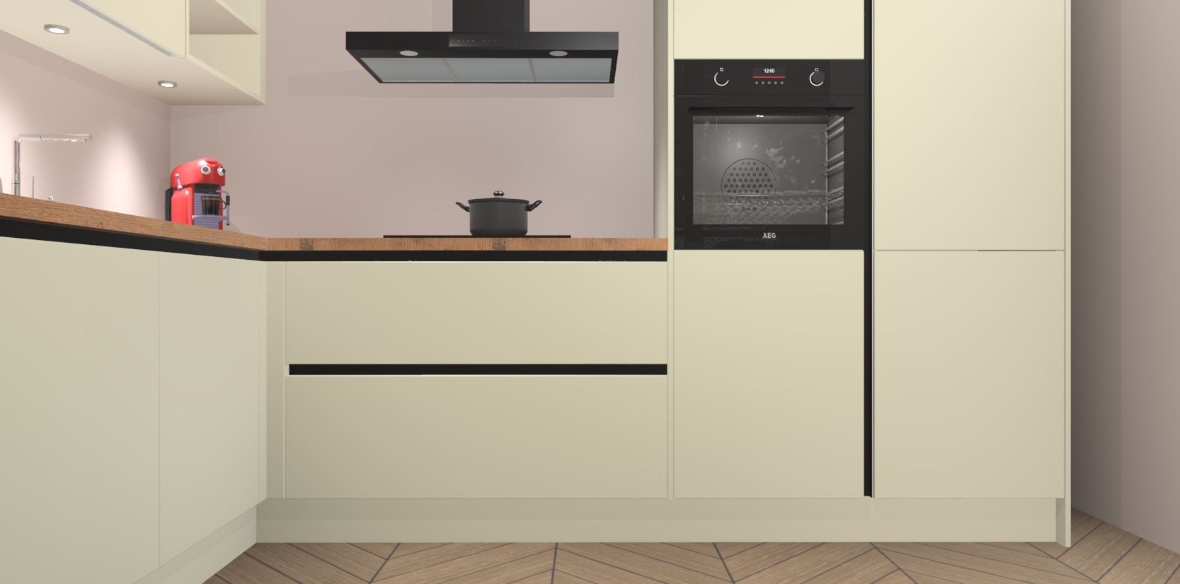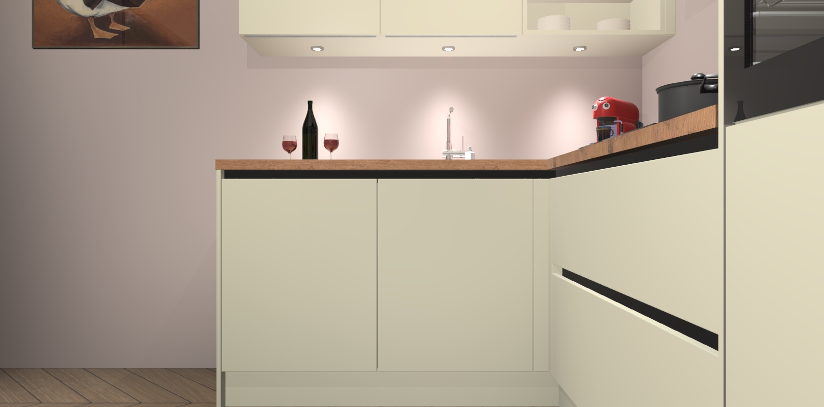 Inclusief plinten, stelpoten en werkblad