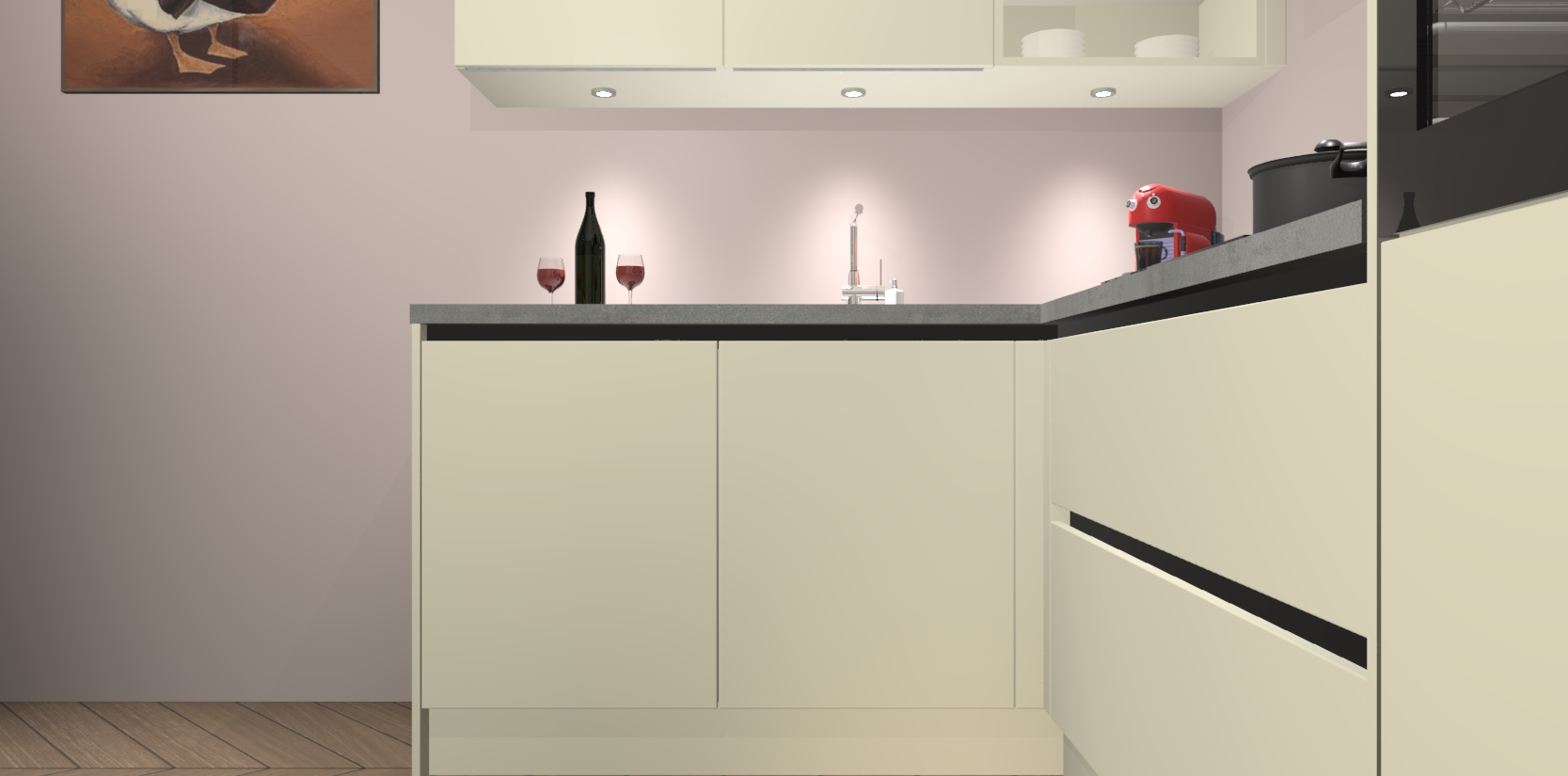 In deze box zijn alle kleuren verzameld van de deuren en werkbladen. Vraag de gratis kleurenbox aan en kijk thuis rustig verder!