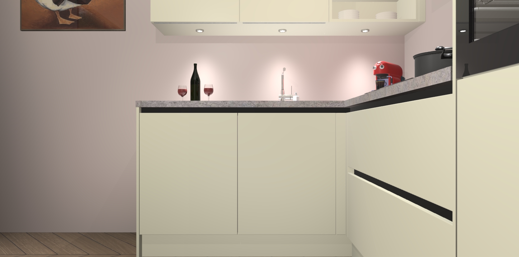 In deze box zijn alle kleuren verzameld van de deuren en werkbladen. Vraag de gratis kleurenbox aan en kijk thuis rustig verder!
