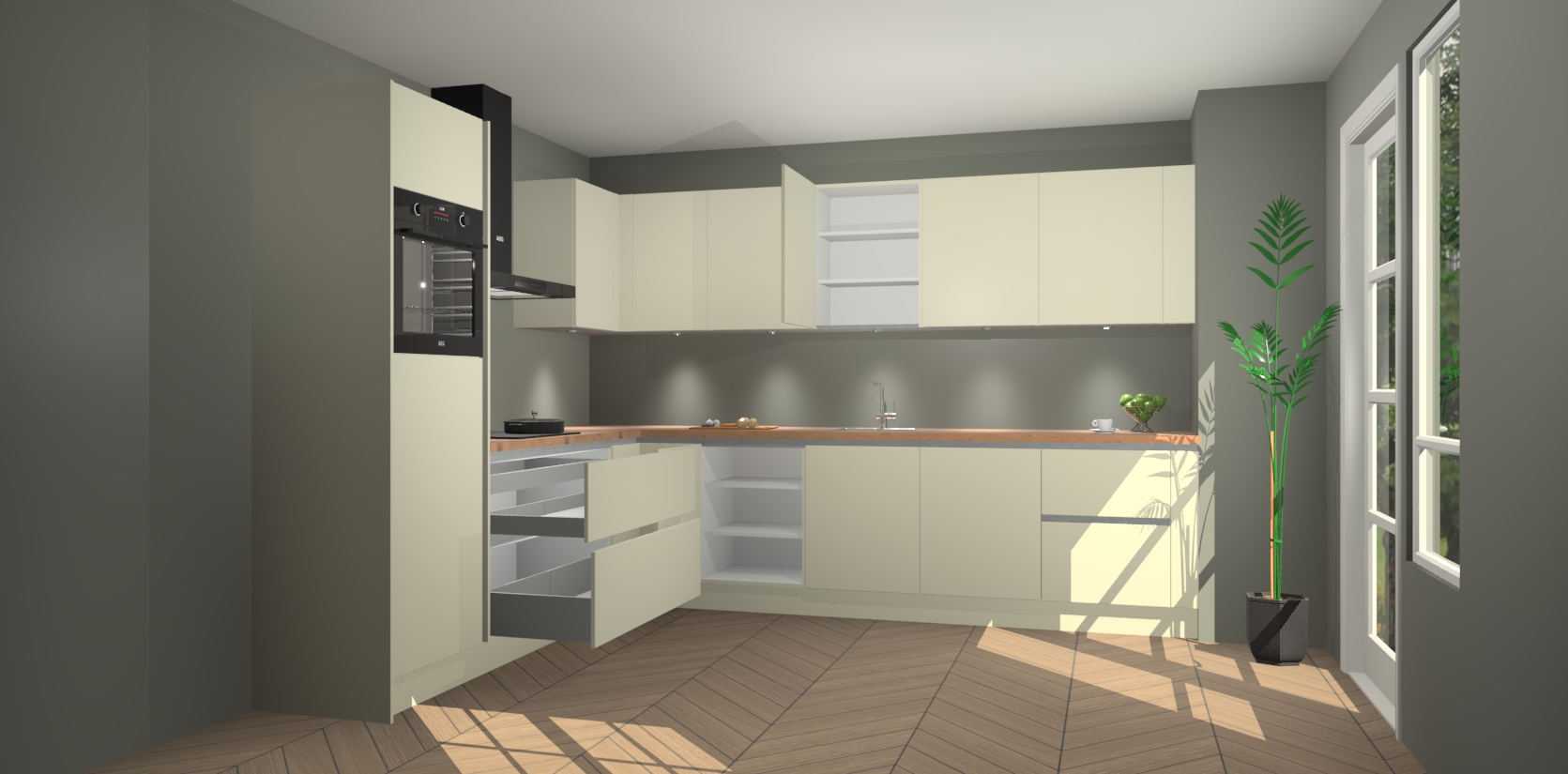 Inclusief plinten, stelpoten en werkblad