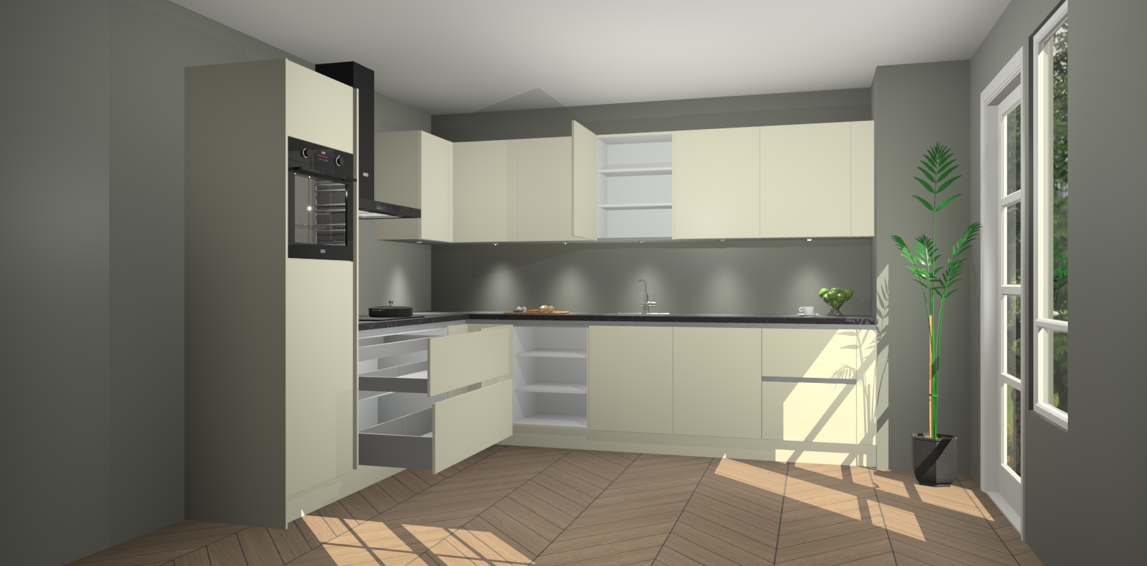 Inclusief plinten, stelpoten en werkblad