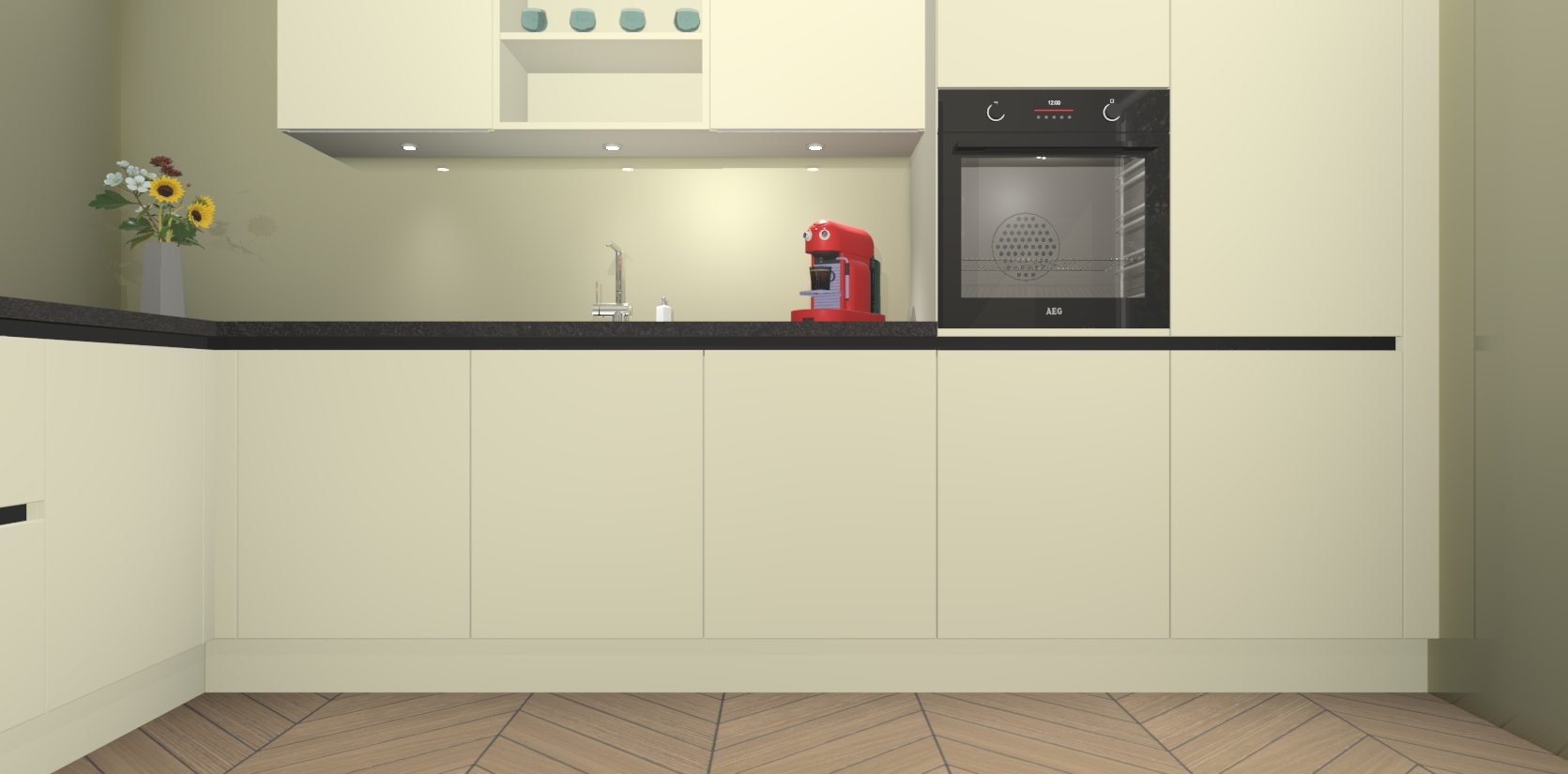 Inclusief plinten, stelpoten en werkblad