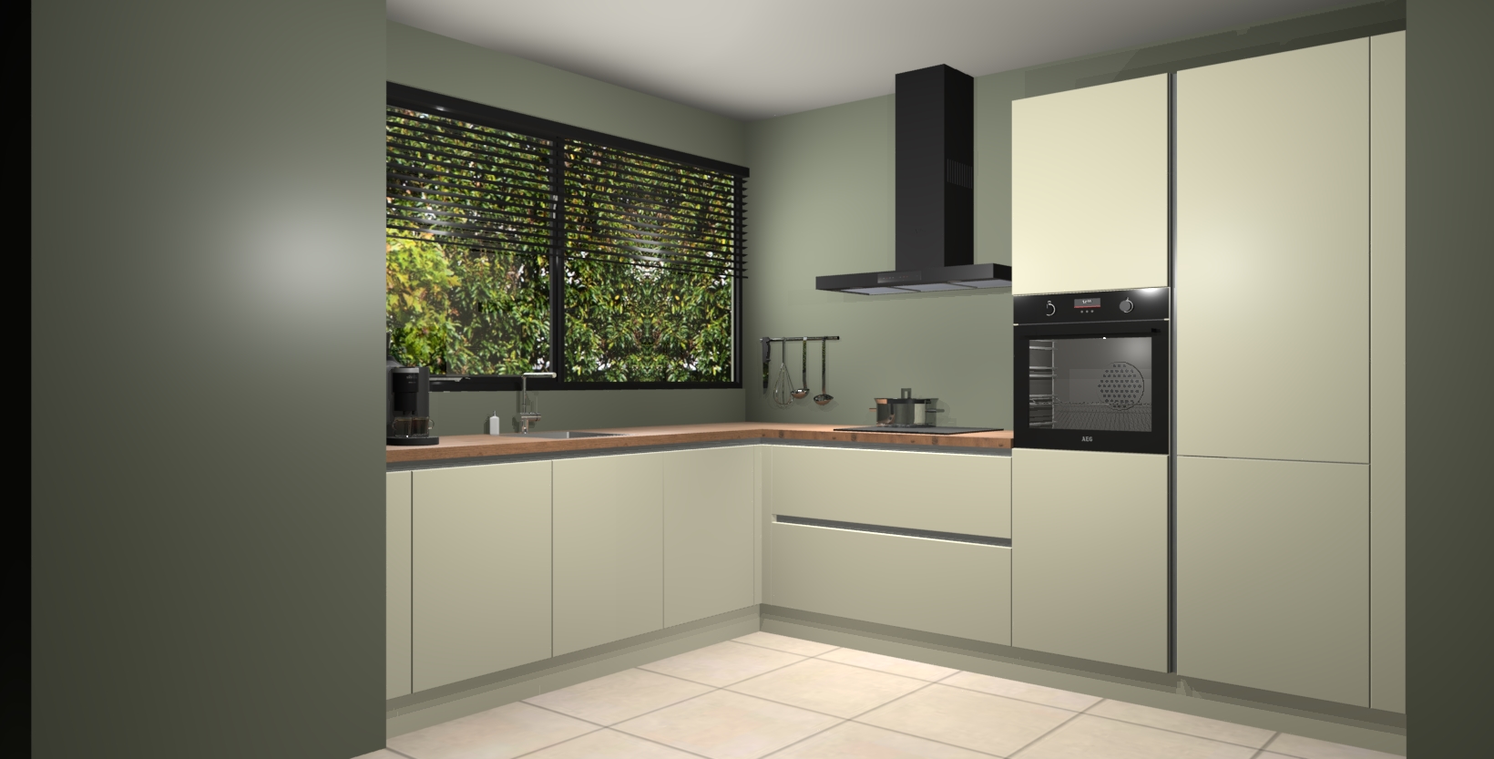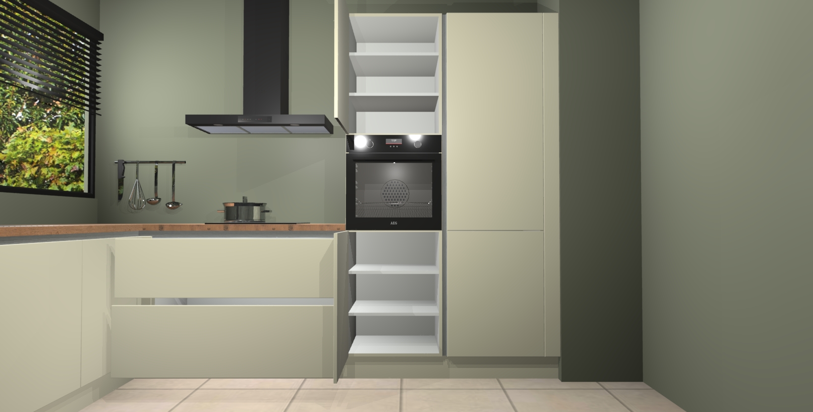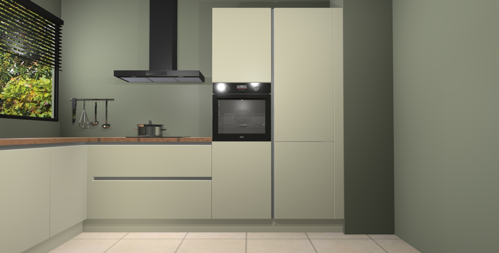Met een modern, tijdloos design en ruime opslagruimte, zult u zich in no-time thuis voelen in uw nieuwe keuken. Uw leven wordt eenvoudiger met de soft-close deuren die voor het ultieme stille comfort zorgen - geen geluid dat u stoort terwijl u kookt. Ook is de keuken voorzien van 5 ingebouwde apparaten: een oven, inductie kookplaat, afzuigkap, vaatwasser en koelkast. Deze kunnen gemakkelijk na bestelling worden bijgewerkt naar AEG - waardoor uw luxe ervaring compleet is.
