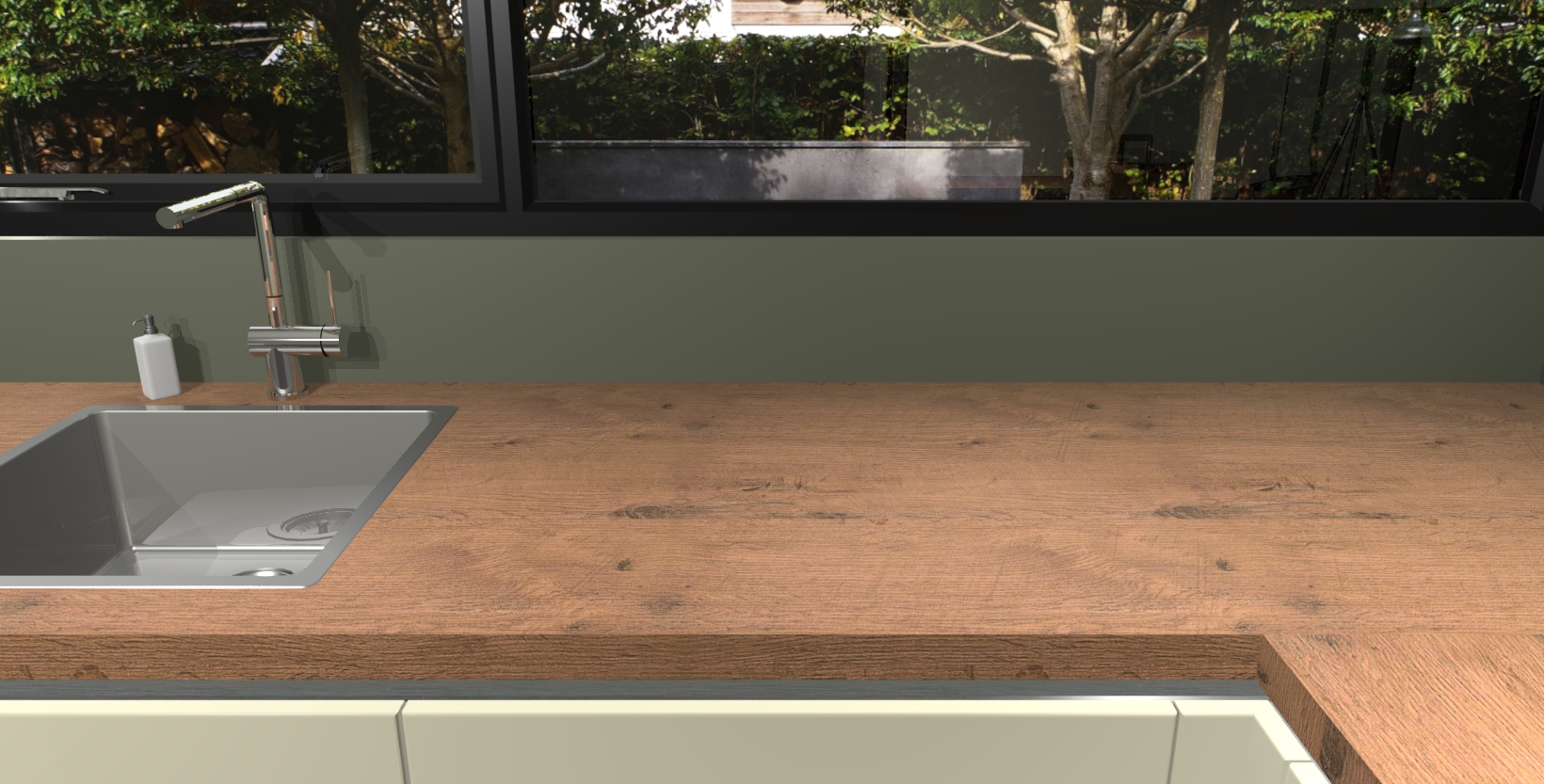 - Bij een hoekwerkblad zijn de hoeken in gevreesd en op maat gemaakt