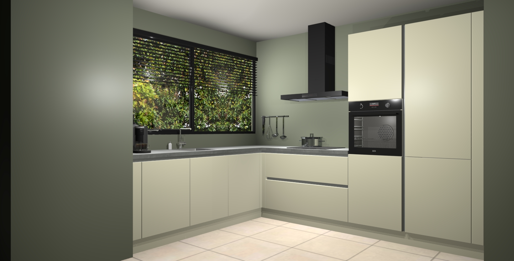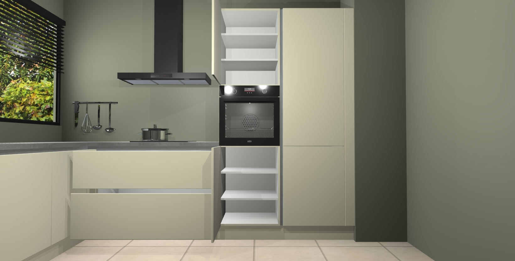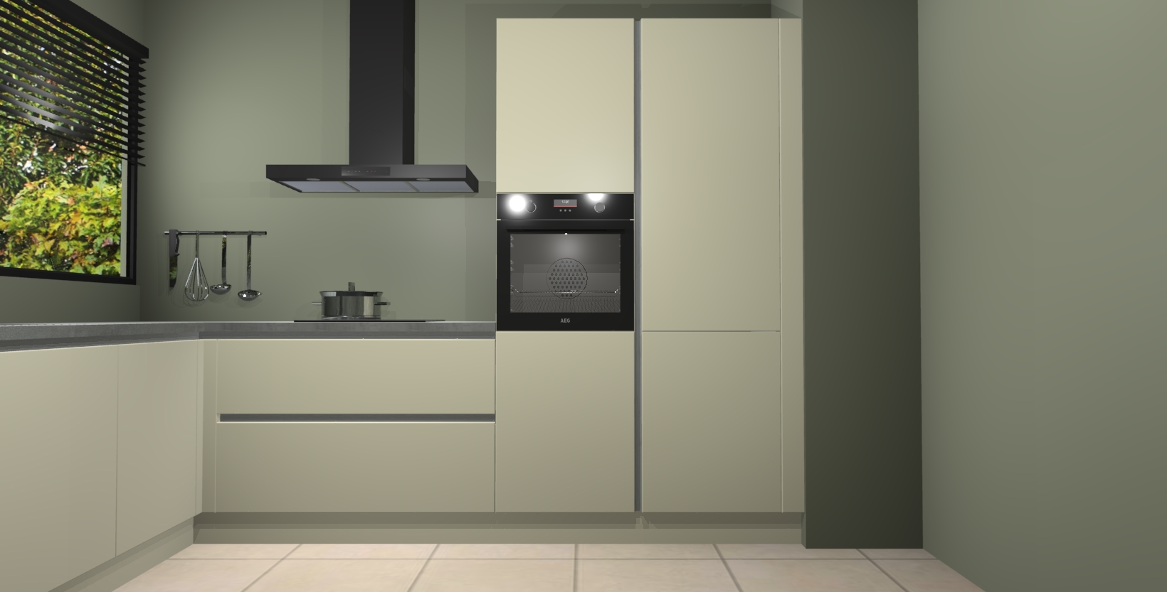 Met een modern, tijdloos design en ruime opslagruimte, zult u zich in no-time thuis voelen in uw nieuwe keuken. Uw leven wordt eenvoudiger met de soft-close deuren die voor het ultieme stille comfort zorgen - geen geluid dat u stoort terwijl u kookt. Ook is de keuken voorzien van 5 ingebouwde apparaten: een oven, inductie kookplaat, afzuigkap, vaatwasser en koelkast. Deze kunnen gemakkelijk na bestelling worden bijgewerkt naar AEG - waardoor uw luxe ervaring compleet is.