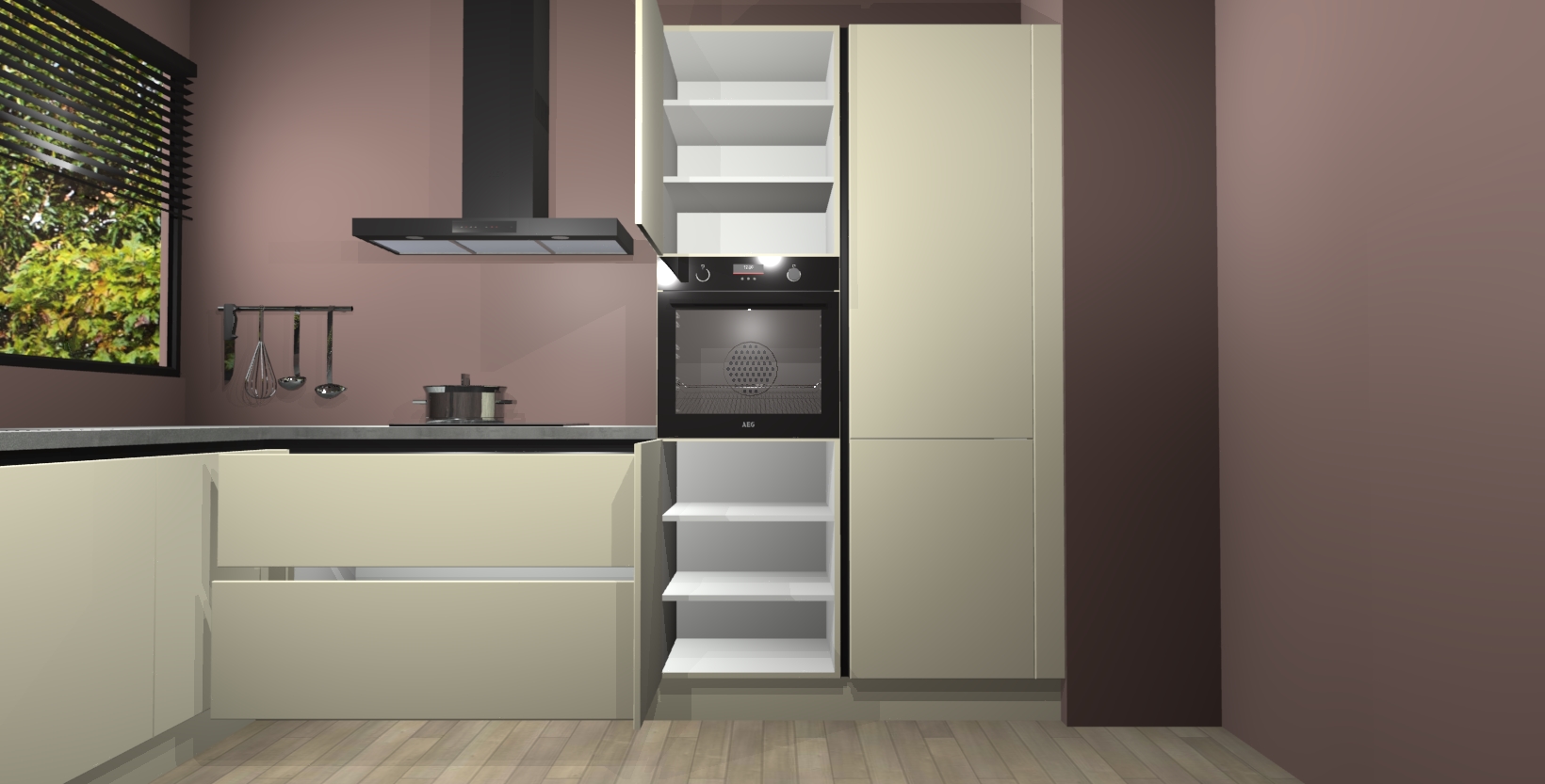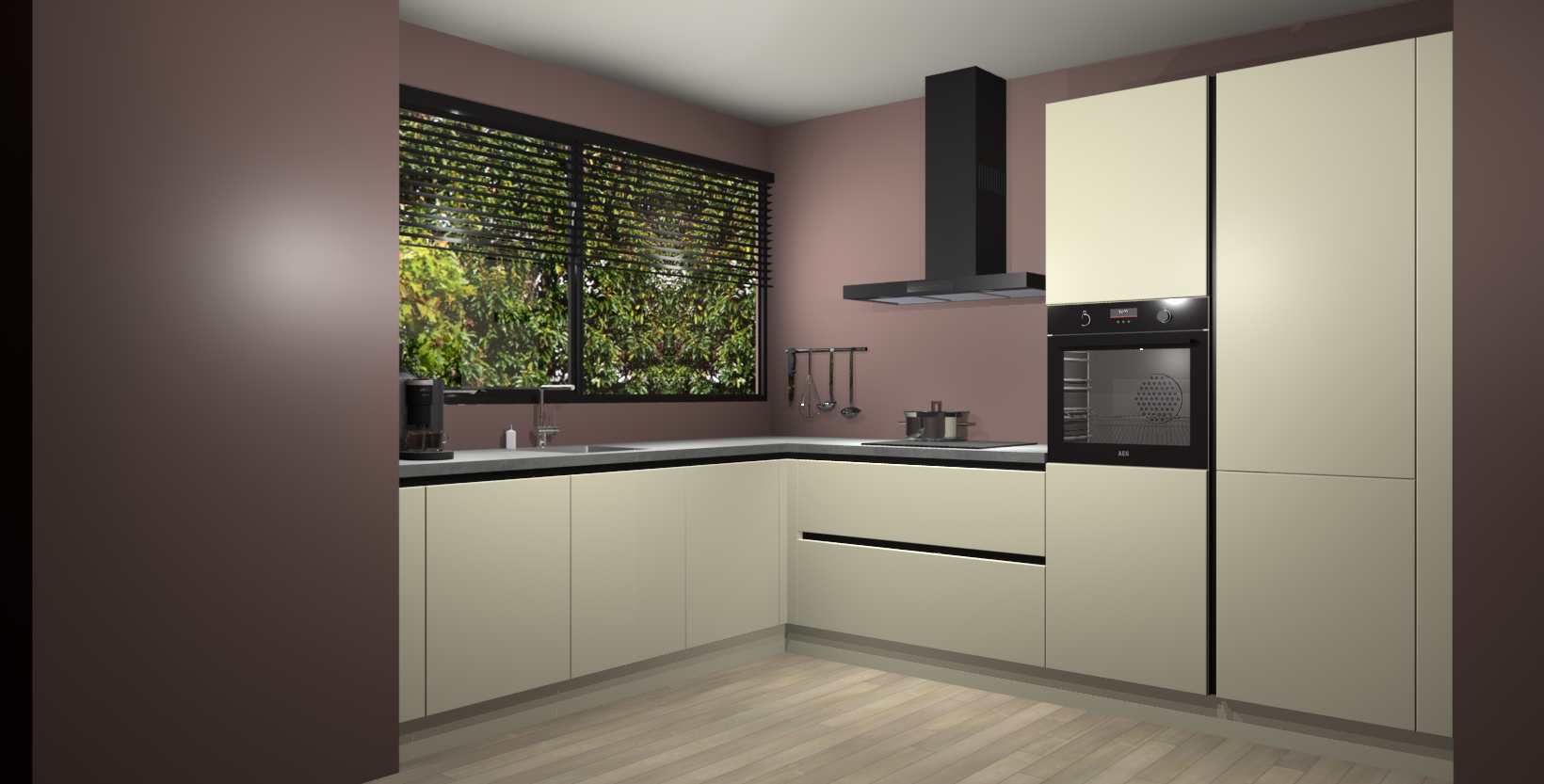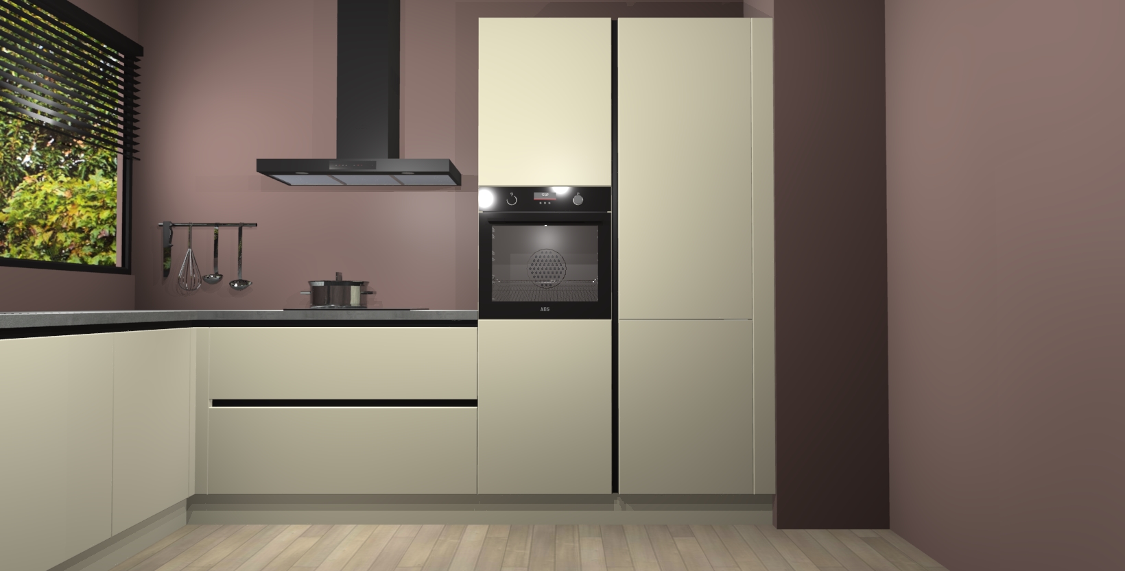 Met een modern, tijdloos design en ruime opslagruimte, zult u zich in no-time thuis voelen in uw nieuwe keuken. Uw leven wordt eenvoudiger met de soft-close deuren die voor het ultieme stille comfort zorgen - geen geluid dat u stoort terwijl u kookt. Ook is de keuken voorzien van 5 ingebouwde apparaten: een oven, inductie kookplaat, afzuigkap, vaatwasser en koelkast. Deze kunnen gemakkelijk na bestelling worden bijgewerkt naar AEG - waardoor uw luxe ervaring compleet is.