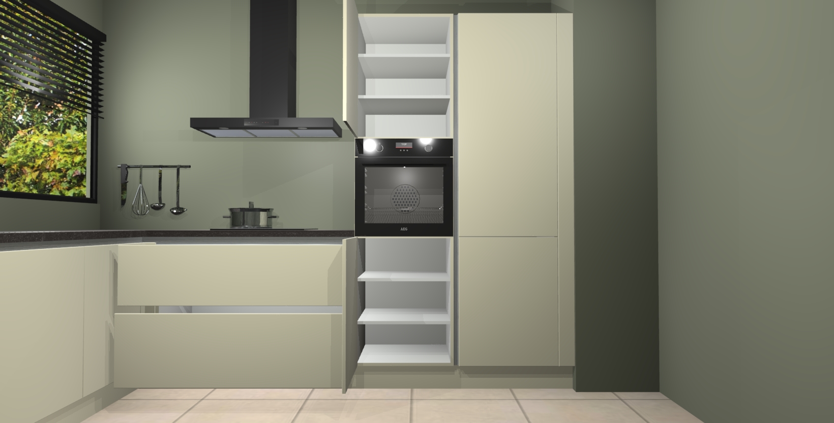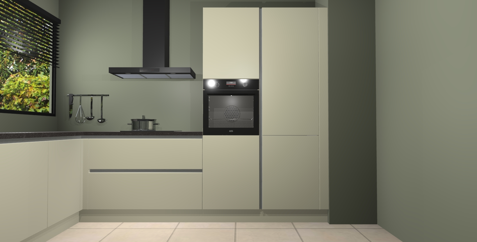 Met een modern, tijdloos design en ruime opslagruimte, zult u zich in no-time thuis voelen in uw nieuwe keuken. Uw leven wordt eenvoudiger met de soft-close deuren die voor het ultieme stille comfort zorgen - geen geluid dat u stoort terwijl u kookt. Ook is de keuken voorzien van 5 ingebouwde apparaten: een oven, inductie kookplaat, afzuigkap, vaatwasser en koelkast. Deze kunnen gemakkelijk na bestelling worden bijgewerkt naar AEG - waardoor uw luxe ervaring compleet is.
