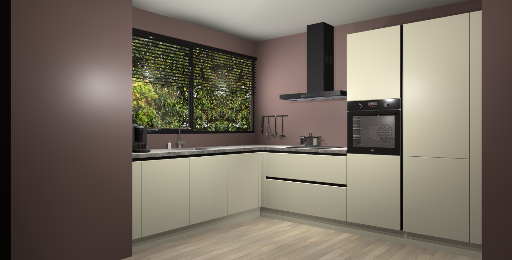 Met een modern, tijdloos design en ruime opslagruimte, zult u zich in no-time thuis voelen in uw nieuwe keuken. Uw leven wordt eenvoudiger met de soft-close deuren die voor het ultieme stille comfort zorgen - geen geluid dat u stoort terwijl u kookt. Ook is de keuken voorzien van 5 ingebouwde apparaten: een oven, inductie kookplaat, afzuigkap, vaatwasser en koelkast. Deze kunnen gemakkelijk na bestelling worden bijgewerkt naar AEG - waardoor uw luxe ervaring compleet is.