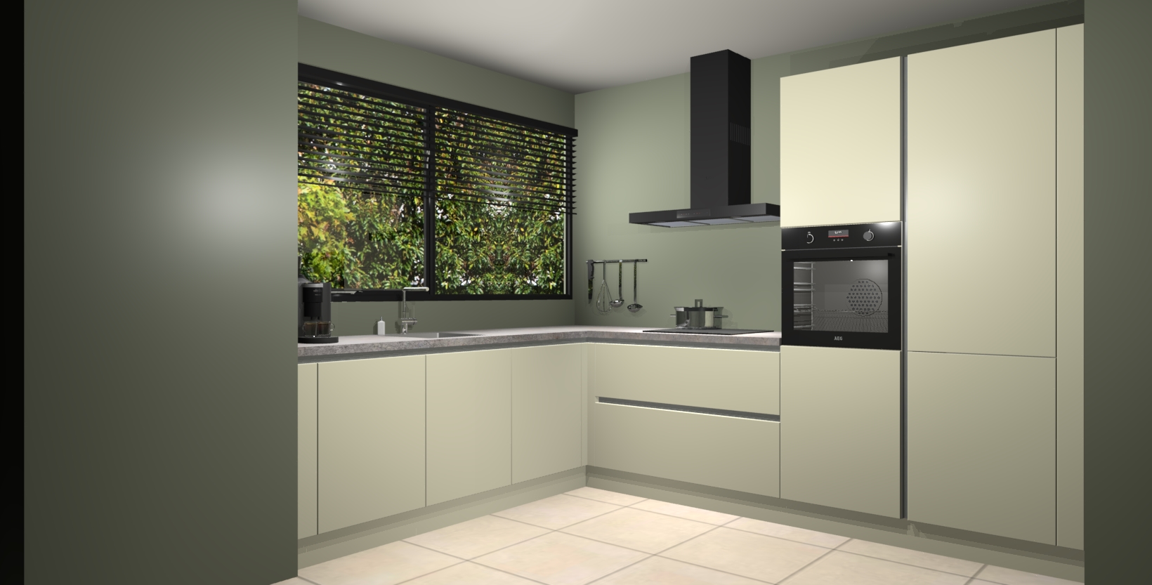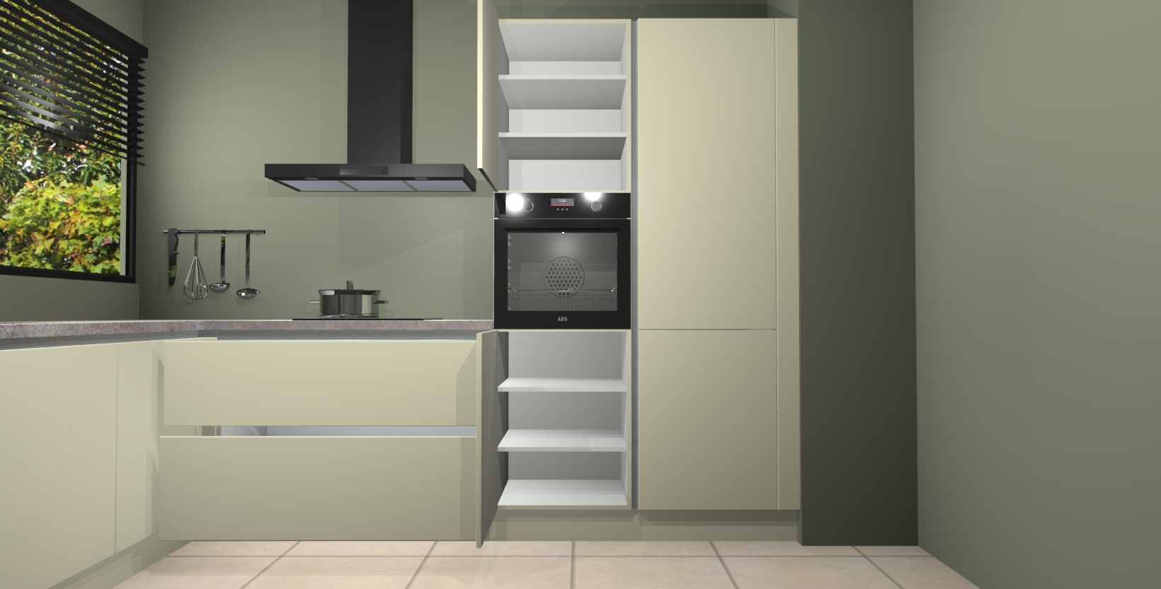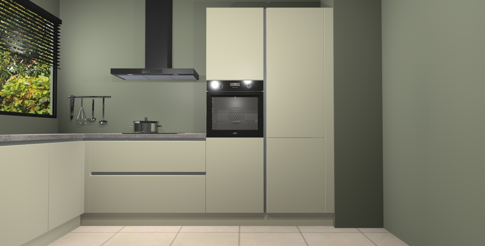 Met een modern, tijdloos design en ruime opslagruimte, zult u zich in no-time thuis voelen in uw nieuwe keuken. Uw leven wordt eenvoudiger met de soft-close deuren die voor het ultieme stille comfort zorgen - geen geluid dat u stoort terwijl u kookt. Ook is de keuken voorzien van 5 ingebouwde apparaten: een oven, inductie kookplaat, afzuigkap, vaatwasser en koelkast. Deze kunnen gemakkelijk na bestelling worden bijgewerkt naar AEG - waardoor uw luxe ervaring compleet is.