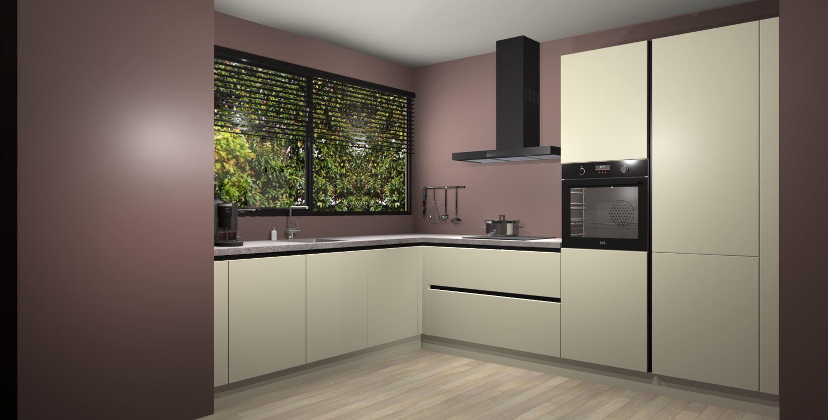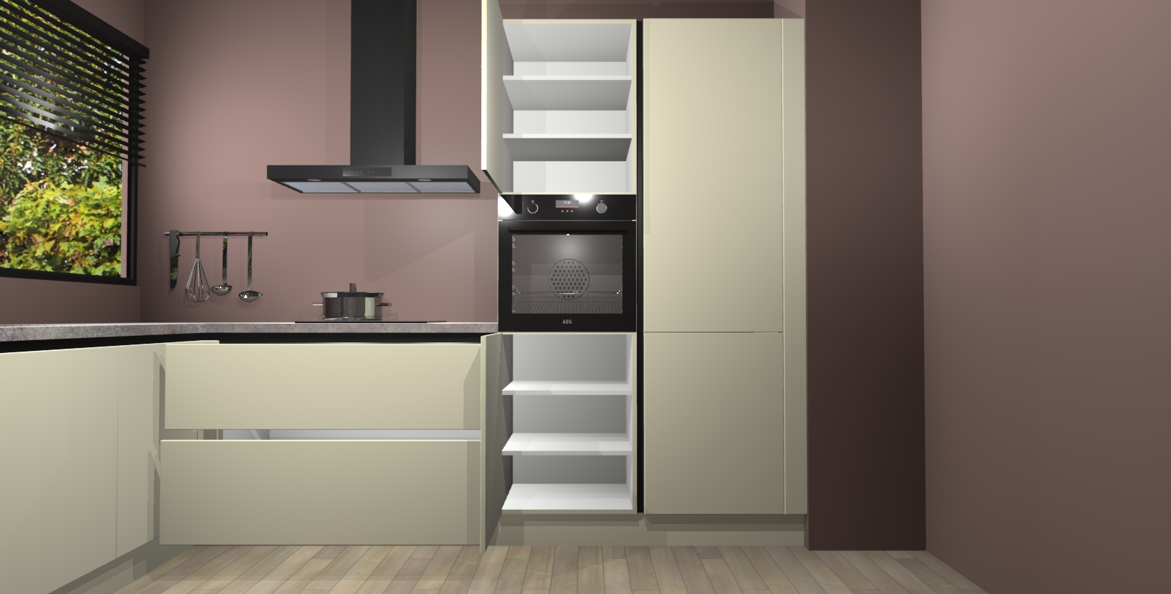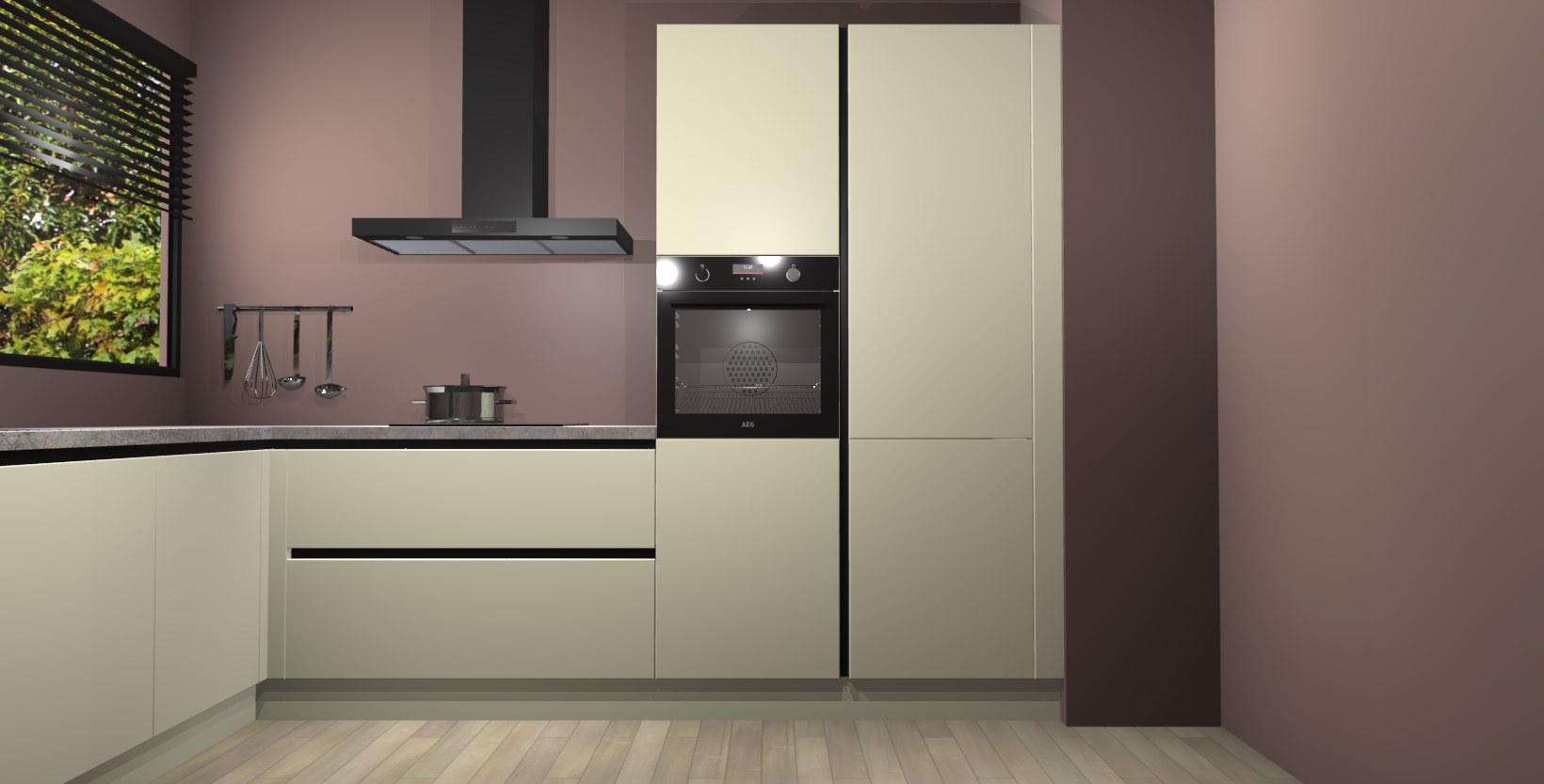 Met een modern, tijdloos design en ruime opslagruimte, zult u zich in no-time thuis voelen in uw nieuwe keuken. Uw leven wordt eenvoudiger met de soft-close deuren die voor het ultieme stille comfort zorgen - geen geluid dat u stoort terwijl u kookt. Ook is de keuken voorzien van 5 ingebouwde apparaten: een oven, inductie kookplaat, afzuigkap, vaatwasser en koelkast. Deze kunnen gemakkelijk na bestelling worden bijgewerkt naar AEG - waardoor uw luxe ervaring compleet is.